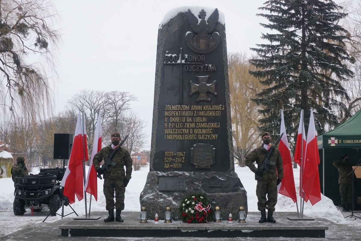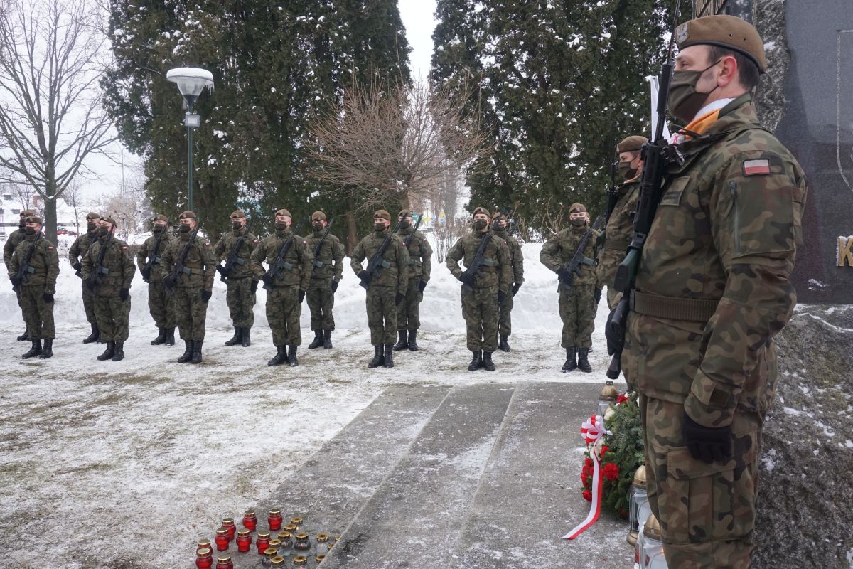 dodano: 15.02.2021Uroczystość odbyła się o godzinie 13.00 na placu przed Pomnikiem Żołnierzy Armii Krajowej przy ulicy Partyzantów w Zamościu. Wybór miejsca, związany jest z przypadającą właśnie tego dnia 79. rocznicą utworzenia Armii Krajowej – formacji, z której dziedzictwa czerpią dziś Terytorialsi. Oddając hołd Bohaterom walk o wolną Ojczyznę, żołnierze 25 batalionu lekkiej piechoty z Zamościa wystawili wartę honorową przy pomniku, złożyli wieniec oraz zapalili symboliczne znicze.