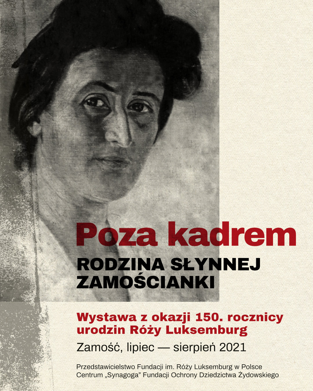 Przedstawicielstwo Fundacji im. Róży Luksemburg w Polsce we współpracy z Centrum „Synagoga” Fundacji Ochrony Dziedzictwa Żydowskiego z okazji 150. rocznicy urodzin Róży Luksemburg przygotowało w zamojskiej synagodze wystawę „Poza kadrem. Rodzina słynnej zamościanki”. Ekspozycja przedstawia urodzone w Zamościu rodzeństwo Róży oraz bratanice i bratanków z warszawskimi aktami urodzenia.