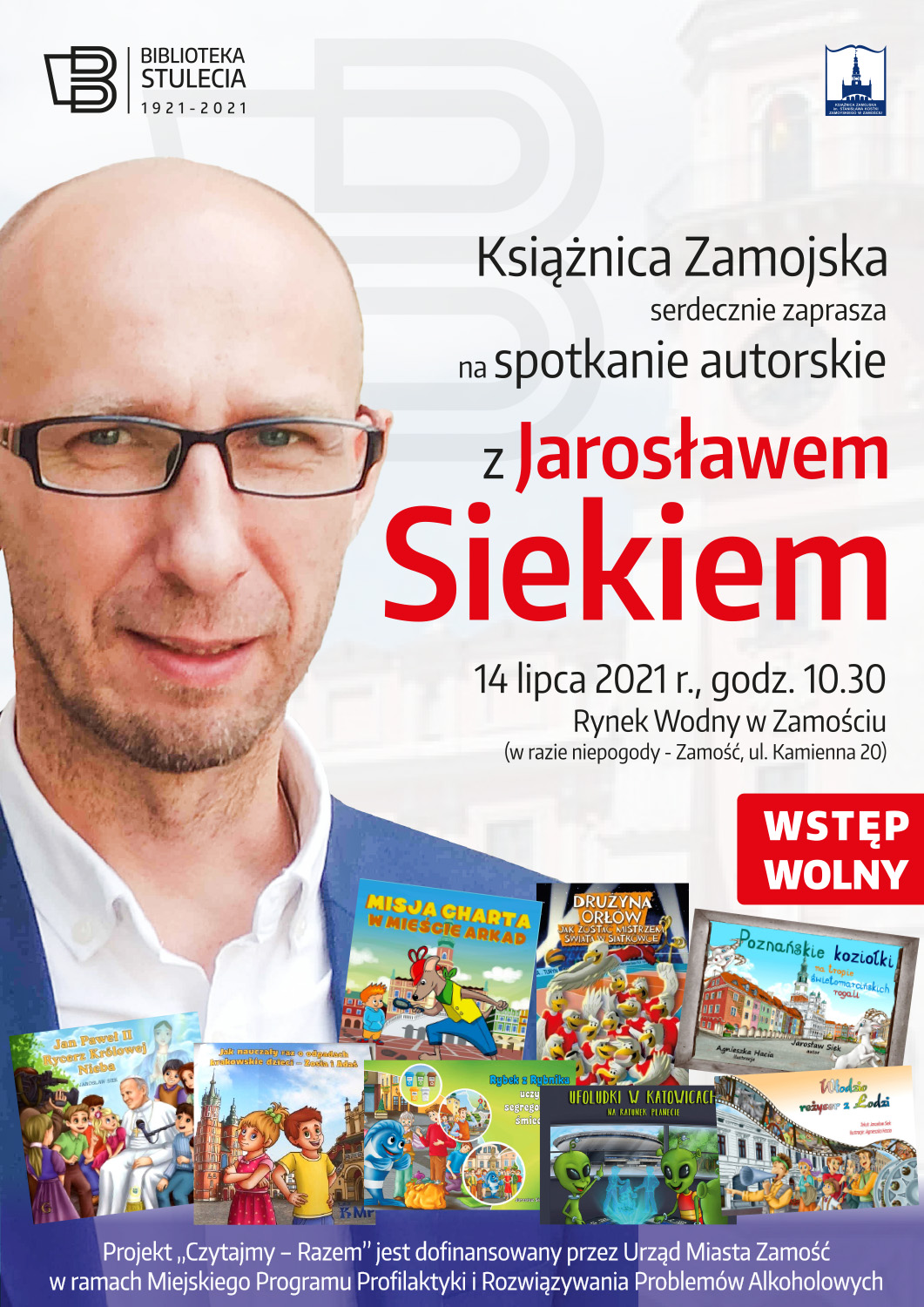 dodano: 13.07.2021Książnica Zamojska im. S. K. Zamoyskiego w Zamościu zaprasza na spotkanie autorskie z Jarosławem Siekiem, które odbędzie się 14 lipca 2021 r. (środa), godz. 10.30 na Rynku Wodnym w Zamościu.