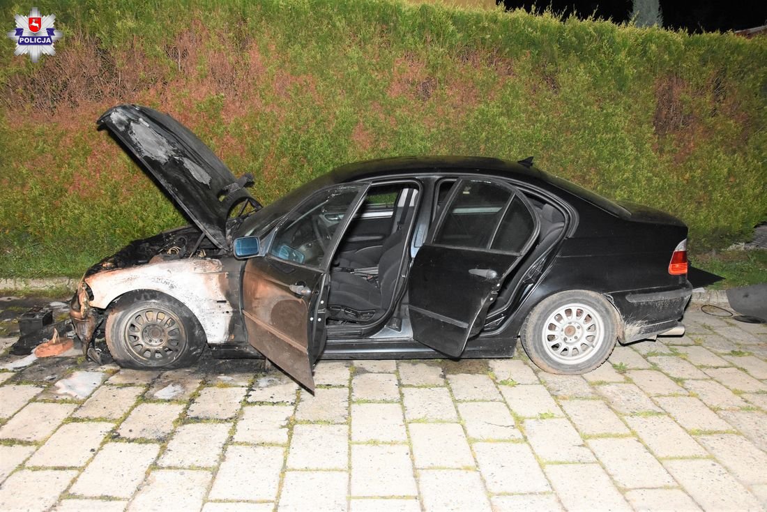 W nocy z piątku na sobotę dyżurny otrzymał zgłoszenie o pożarze BMW, który był zaparkowany przed jedną z posesji w miejscowości Grabowiec. W związku ze zgłoszeniem na miejsce natychmiast udali się policjanci oraz dwie załogi Ochotniczej Straży Pożarnej. Wstępnie ustalono, że pojazd został oblany łatwopalną cieczą, a następnie podpalony. Butelka znajdowała się w przy samochodzie. Nie było wątpliwości, że doszło do podpalenia.