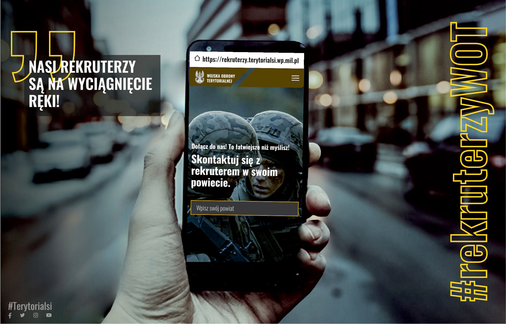 dodano: 14.07.2021Dowództwo Wojsk Obrony Terytorialnej uruchomiło nowy serwis internetowy dedykowany rekrutacji. Pod adresem www.rekruterzy.terytorialsi.wp.mil.pl każdy, kto myśli o wstąpieniu w szeregi terytorialsów może szybko i łatwo znaleźć bezpośredni kontakt do rekrutera ze swojego regionu.