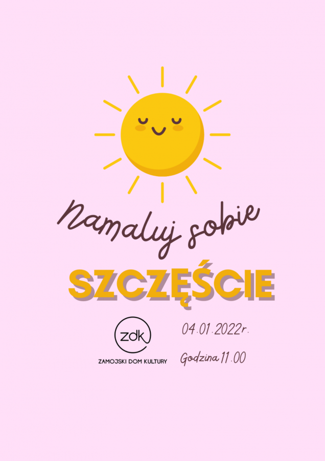 W Nowym Roku pozwólmy sobie na szczęście o każdej porze roku… w wielkich ilościach J Zapraszamy dzieci w wieku 5+ na warsztaty edukacyjno-plastyczne wprowadzające w świat szczęścia. Zostały opracowane z wykorzystaniem książki autorstwa: Helen Russell „ Atlas szczęścia”. Kiedy: 04.01.2022 roku o godzinie 11:00 Koszt: 15 zł Dodatkowe informacje oraz zapisy: edukacja@zdk.zamosc.pl