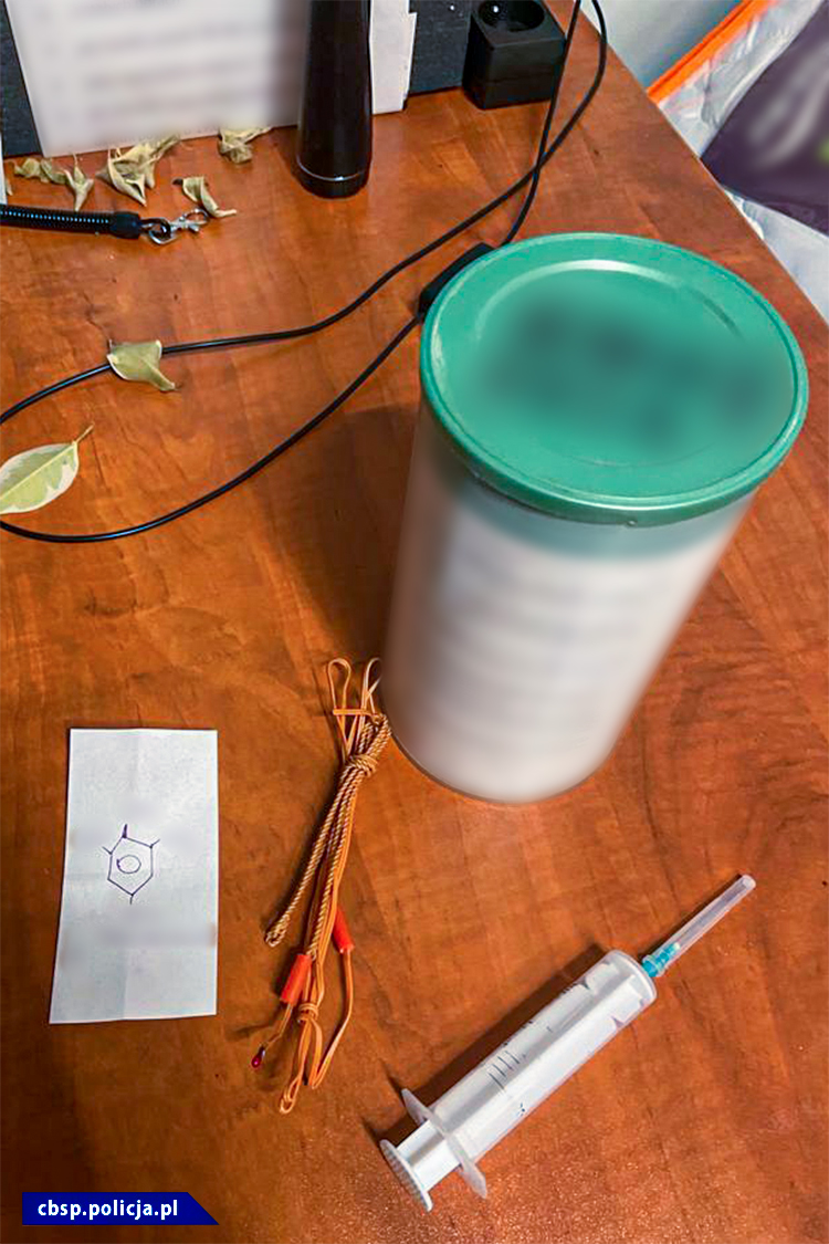 Podczas akcji funkcjonariusze przejęli 4 urządzenia wybuchowe wraz z zapalnikami, 9 kg materiałów wybuchowych, 120 kg prekursorów materiałów wybuchowych, w tym 45 litrów substancji płynnych. Zabezpieczono także 60 kg środków chemicznych mogących posłużyć do wytwarzania materiałów pirotechnicznych oraz marihuanę.
