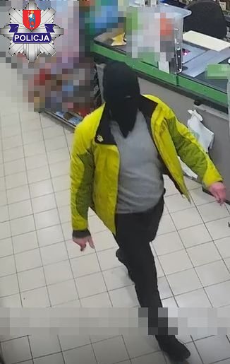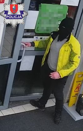 Rysopis sprawcy: mężczyzna ubrany był w kurtkę w jaskrawym żółto – zielonym kolorze, czarne spodnie i czarne sportowe buty, na głowie miał kaptur, jego twarz zasłaniała chusta. Był krępej budowy ciała, średniego wzrostu.