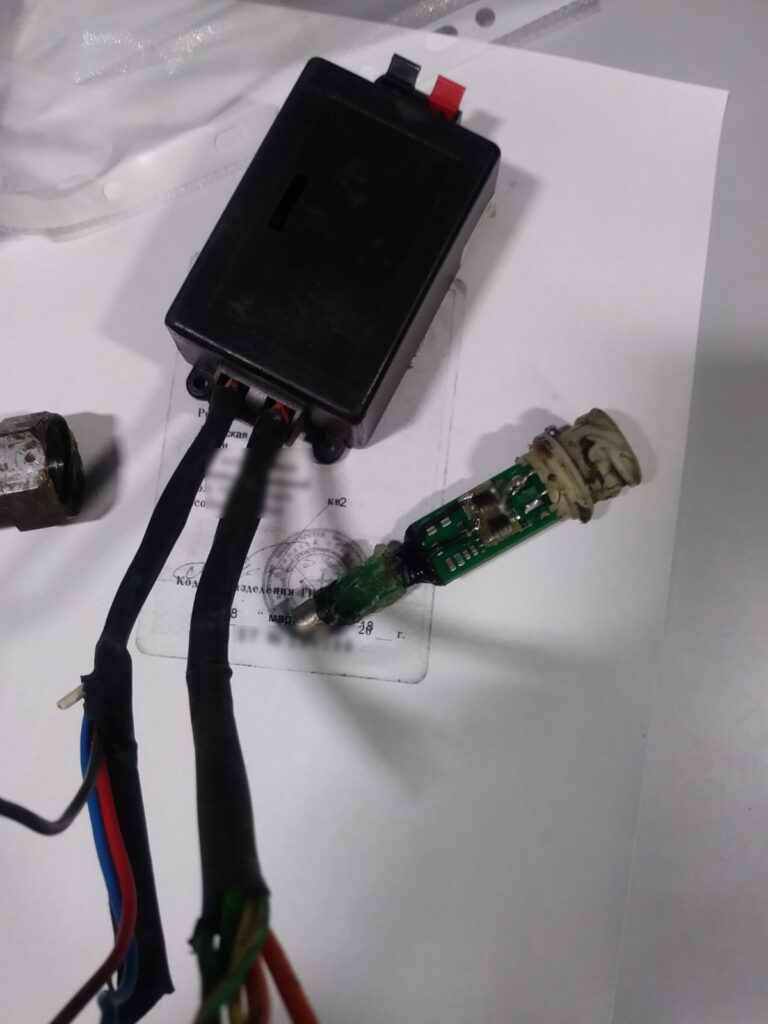W trakcie czynności kontrolnych stwierdzono, że do tachografu podłączone zostało niedozwolone urządzenie służące do fałszowania czasu pracy kierowcy (wyłącznik tachografu). Powyższa przeróbka pozwalała na dowolne wyłączanie tachografu tak, że pomimo ruchu pojazdu tachograf rejestrował okres odpoczynku.