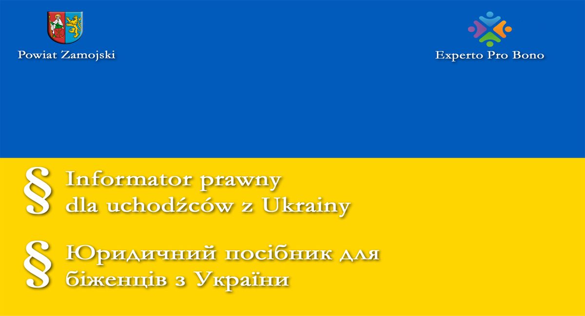 dodano: 06.04.2022Uprzejmie informujemy, że Fundacja Rozwoju Świadomości Obywatelskiej Experto Pro Bono prowadząca punkty nieodpłatnej pomocy prawnej i nieodpłatnego poradnictwa obywatelskiego na terenie Powiatu Zamojskiego przygotowała informator prawny dla uchodźców z Ukrainy.