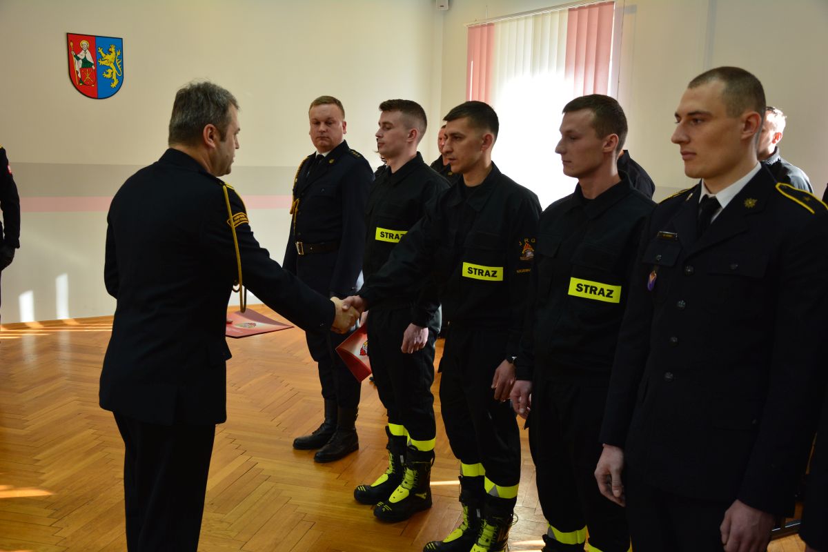 W ramach zorganizowanej zbiórki wręczono awanse na wyższe stopnie służbowe przyznane z okazji Święta Niepodległości, które nie zostały wręczone z powodu trwających obostrzeń. Ślubowanie strażaków było dobrą okazją do ich wręczenia. Stopień aspiranta otrzymał Szymon Herbin. Stopień starszego ogniomistrza otrzymali: Antoni Nogas, Artur Sowa. Stopień młodszego ogniomistrza otrzymał, Rafał Żulewski. Stopień starszego sekcyjnego otrzymał Konrad Majewski. Stopień sekcyjnego otrzymali: Mateusz Gontarz, Wojciech Jarmuł, Daniel Kozłowski, Adrian Molas, Damian Samulak.