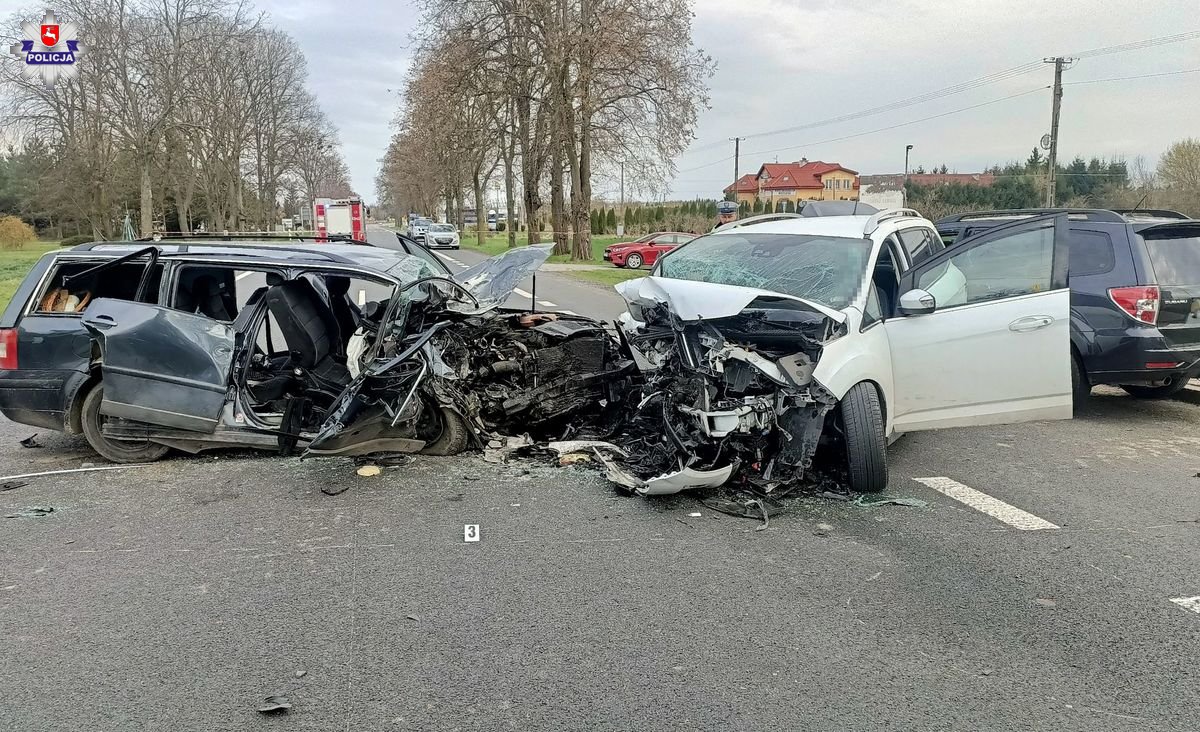 Do wypadku doszło w niedzielę przed godziną 15:00 w miejscowości Zakręcie. Ze wstępnych ustaleń policjantów z krasnostawskiej drogówki wynika, że kierujący fordem zjechał na przeciwległy pas ruchu i czołowo zderzył się z volkswagenem. Następnie oba pojazdy najechały na znajdujące się w zatoczce subaru.