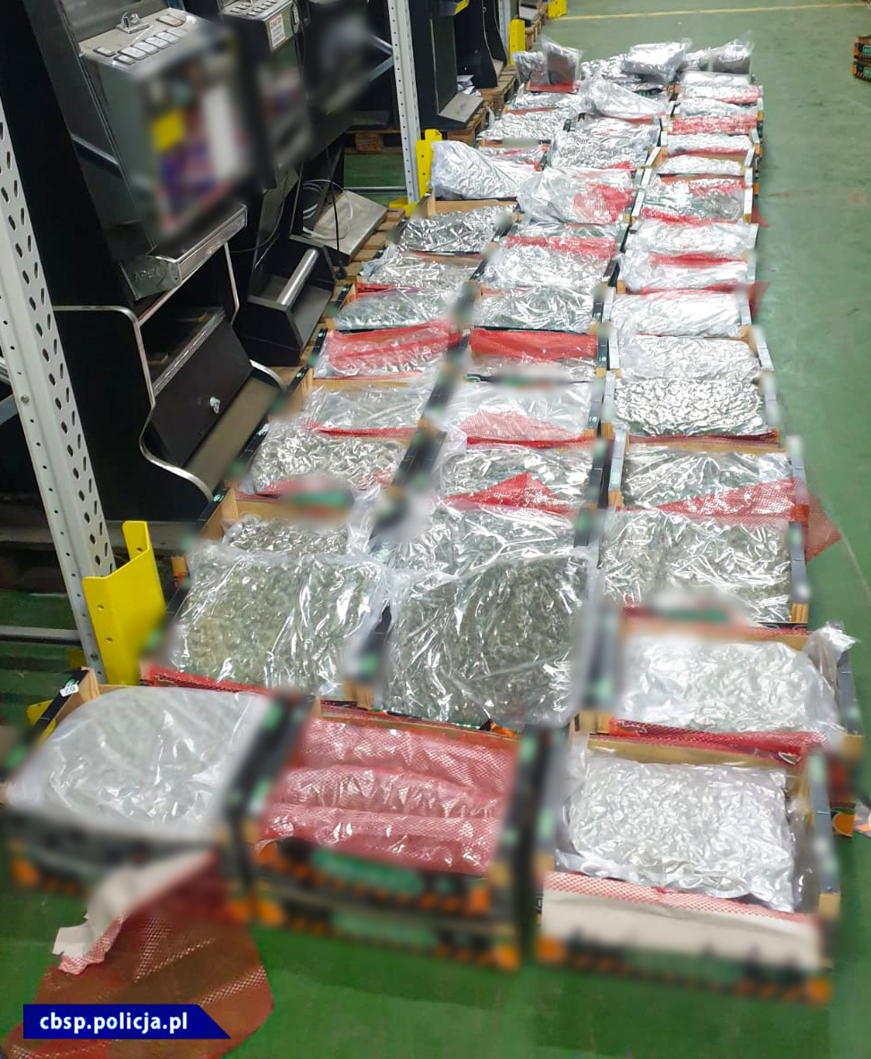 W okolicach Bełchatowa w woj. łódzkim policjanci CBŚP zatrzymali do kontroli kierowcę samochodu ciężarowego, który zgodnie z dokumentacją przewoził pomarańcze z Hiszpanii do Polski. Do działań włączyli się także funkcjonariusze Łódzkiego Urzędu Celno-Skarbowego (KAS), którzy wspólnie z policjantami przeszukali pojazd ciężarowy. Na jednej z palet, w skrzyniach zamiast owoców znajdowały się hermetycznie zapakowane worki foliowe z marihuaną. Podczas akcji zabezpieczono 177 kg marihuany wartej ponad 7 mln zł. Z takiej ilości narkotyku można by uzyskać ponad 170 tys. działek dilerskich.
