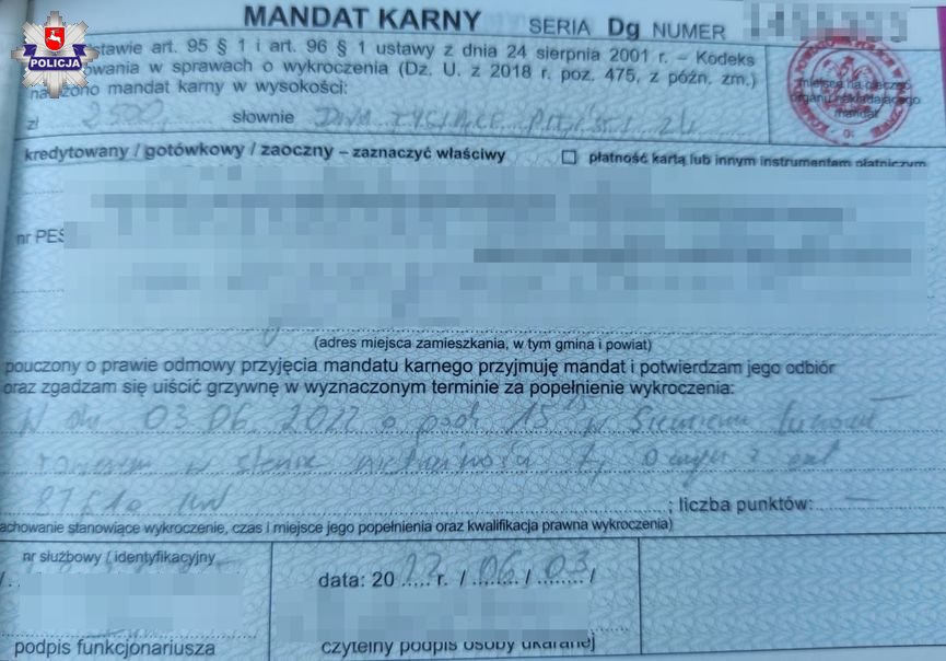 Mandatami w kwocie 2,5 tysiąca złotych ukarani zostali m.in. rowerzyści z powiatu parczewskiego. Obydwaj wpadli w Siemieniu. Jeden z nich, 53-latek kierował jednośladem mając w organizmie ponad promil alkoholu, drugi natomiast – 39-latek z gminy Siemień – miał 1,2 promila.