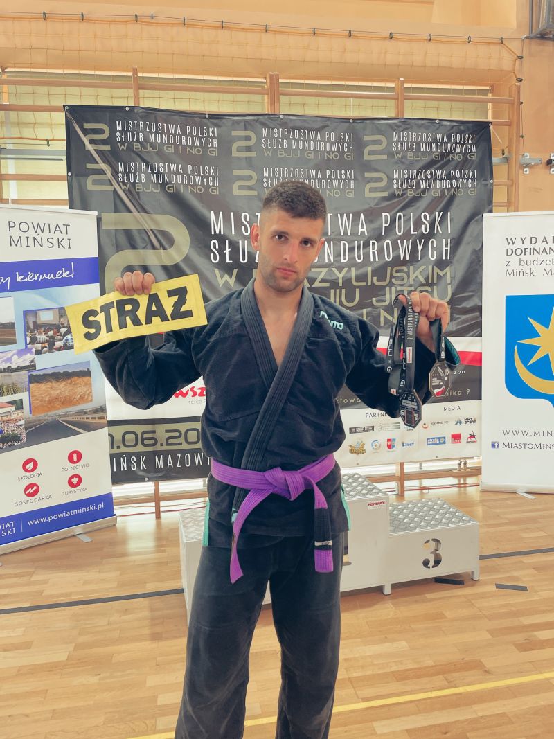 dodano: 15.06.2022Sekcyjny Karol Swatko strażak z Jednostki Ratowniczo Gaśniczej w Zamościu, po raz kolejny zdobył podwójne mistrzostwo w kategorii GI (kimono) oraz NO GI (bez kimona) podczas Mistrzostw Polski Służb Mundurowych w Brazylijskim JIU-JITSU, które odbyły się 12 czerwca w Mińsku Mazowieckim. W ubiegłym roku również wywalczył mistrzowskie tytuły w obydwu kategoriach. Rywalizacja była prowadzona w systemie pucharowym z udziałem ok. 300 zawodników. Karol stoczył po trzy walki w każdej z kategorii.