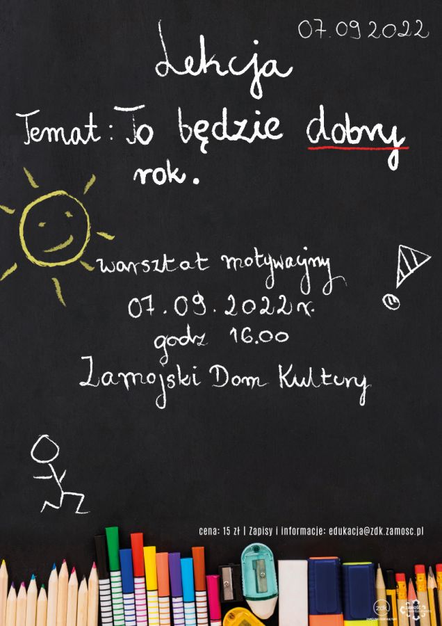 dodano: 30.08.2022Drodzy uczniowie, Nie ma co płakać nad rozlanym mlekiem! Wakacje się skończyły! Zaczął się NOWY ROK SZKOLNY! Zapraszamy Was na warsztat motywacyjny: TO BĘDZIE DOBRY ROK. Trener Inteligencji Emocjonalnej podpowie Wam, co zrobić, żeby DOBRY był.