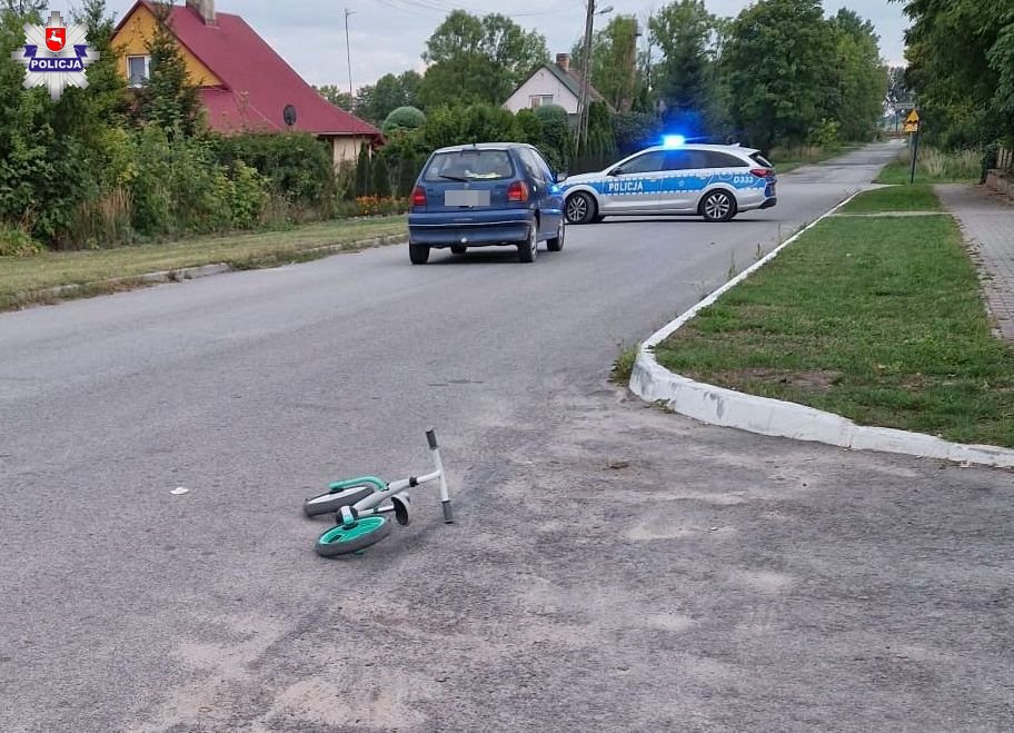 Wczoraj przed godziną 17 dyżurny tomaszowskiej policji otrzymał zgłoszenie o zdarzeniu drogowym do którego doszło w Machnowie Nowym. Na miejsce został skierowany patrol policji. Z ich wstępnych ustaleń wynika, że 2 letni chłopiec będąc pod opieką babci jechał rowerkiem biegowym. W pewnej chwili chłopiec przyspieszył i gwałtownie wjechał na ulicę uderzając w bok jadącego volkswagena golfa.
