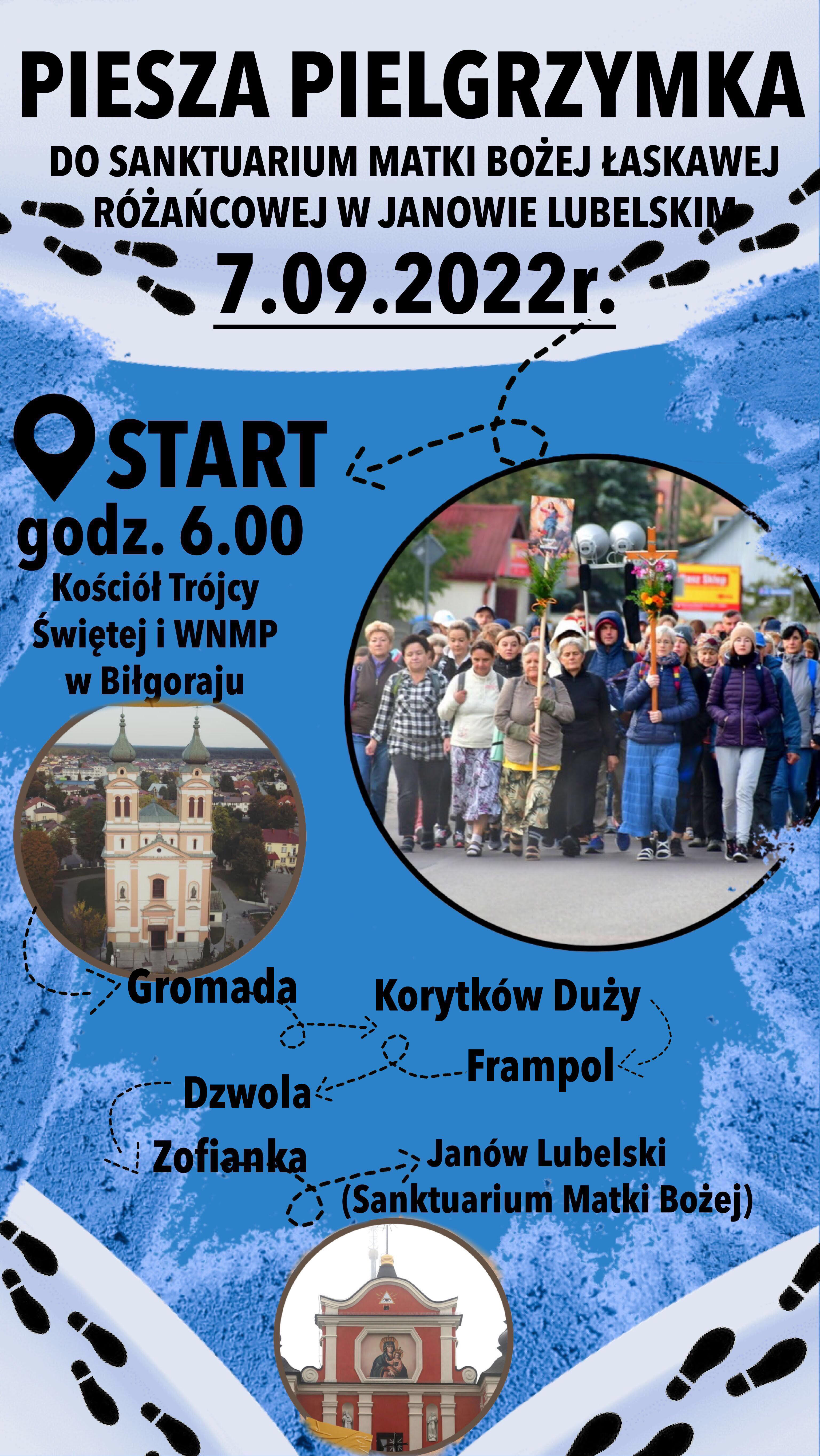 dodano: 01.09.2022Serdecznie zapraszamy w środę 7 września 2022 r., na Pieszą Pielgrzymkę do Janowa Lubelskiego do Sanktuarium Matki Bożej Łaskawej.