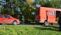 Do zdarzenia dwóch volkswagenów doszło wczoraj o miejscowości Podwysokie (gmina Skierbieszów). Powiadomieni o nim policjanci na miejscu wstępnie ustalili, że kierujący pojazdem dostawczym świadcząc usługi jako kierowca sklepu obwoźnego zatrzymał się przy prawej krawędzi jezdni sygnalizując postój światłami awaryjnymi. W trakcie postoju pasażerka pojazdu przeszła do przestrzeni ładunkowej, gdzie obsługiwała robiącą zakupy klientkę. Wówczas na tył volkswagena najechał kierujący polo, który prawdopodobnie oślepiony promieniami słońca nieprawidłowo wykonał manewr omijania.