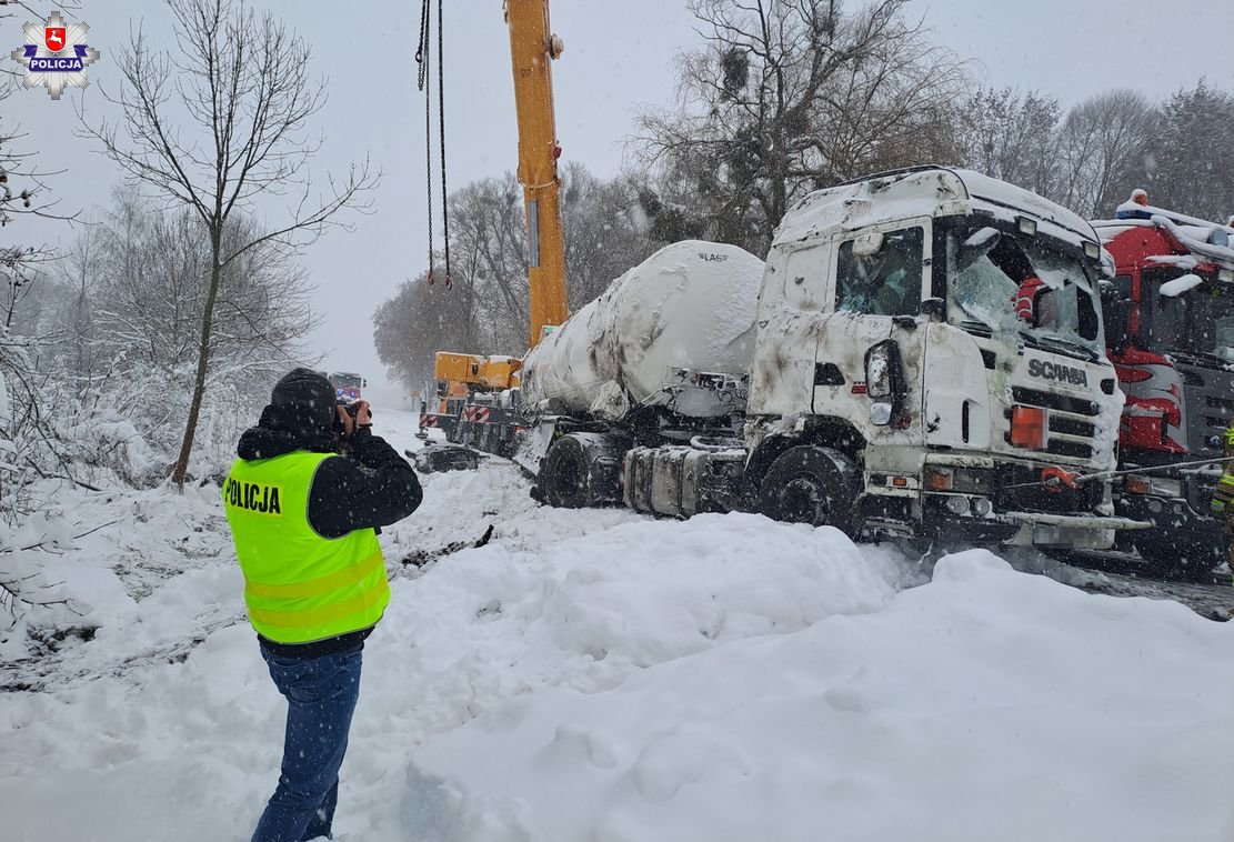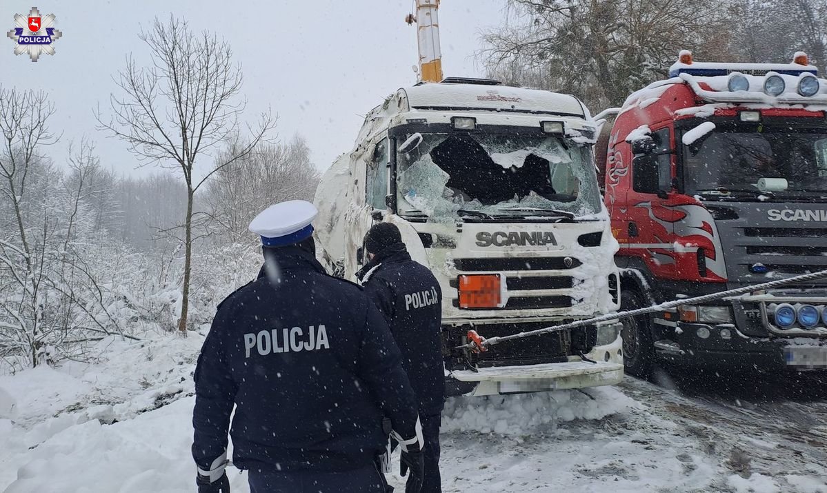 Do zdarzenia doszło w minioną sobotę wieczorem w miejscowości Krupe na drodze wojewódzkiej numer 812 na trasie Chełm – Krasnystaw. 64-letni obywatel Litwy, kierujący ciężarową Scanią z cysterną przewożącą paliwo nie dostosował prędkości jazdy do warunków pogodowych, stracił panowanie nad pojazdem i zjechał do rowu, doprowadzając do przewrócenia pojazdu.