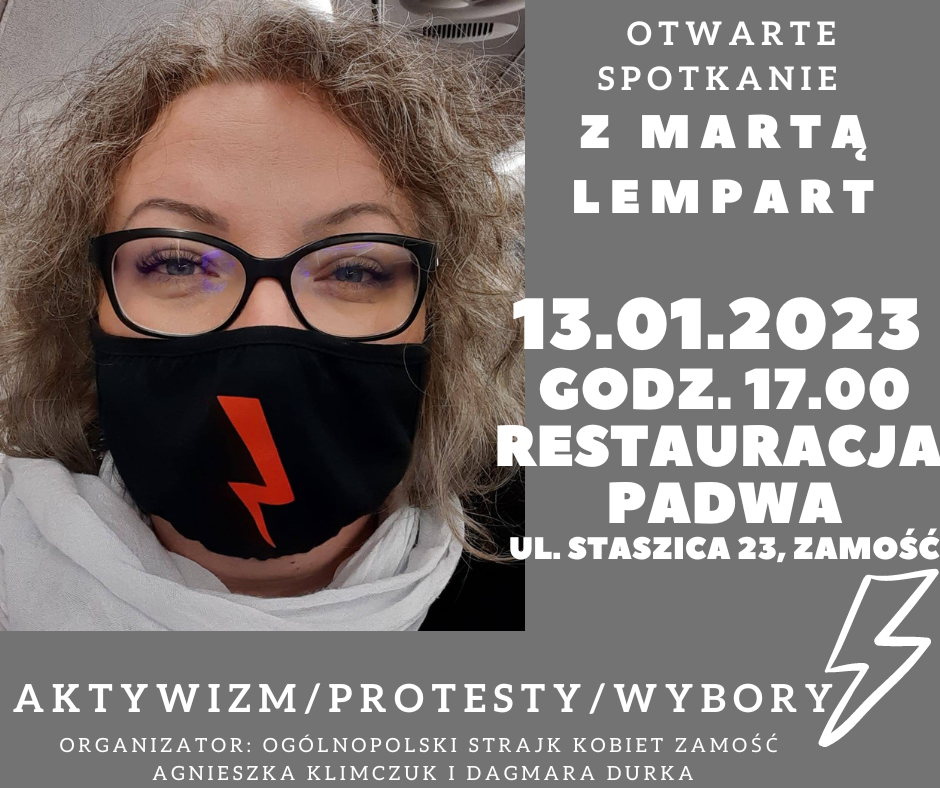dodano: 11.01.2023W najbliższy piątek 13.01. w Zamościu: SPOTKANIE OTWARTE Z MARTĄ LEMPART. Restauracja PADWA ul. Staszica 23.