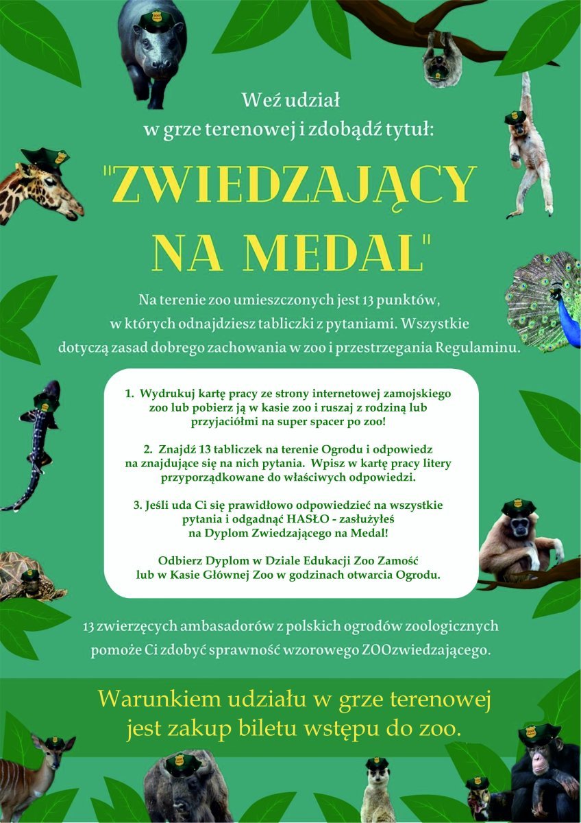 Od poniedziałku do niedzieli (6-12 marca), na terenie ogrodu umieszczonych będzie 13 plansz z pytaniami. Jeśli prawidłowo na nie odpowiecie i odgadniecie hasło, możecie otrzymać dyplom oraz gadżet promujący zamojskie zoo. Kartę odpowiedzi możecie pobrać ze strony (pliki do pobrania) lub w Kasie Głównej. Z prawidłowo wypełnioną kartą zapraszamy do Działu Edukacji lub do Kasy, po odbiór dyplomu i drobnego upominku. Dyplom można również wydrukować ze strony internetowej