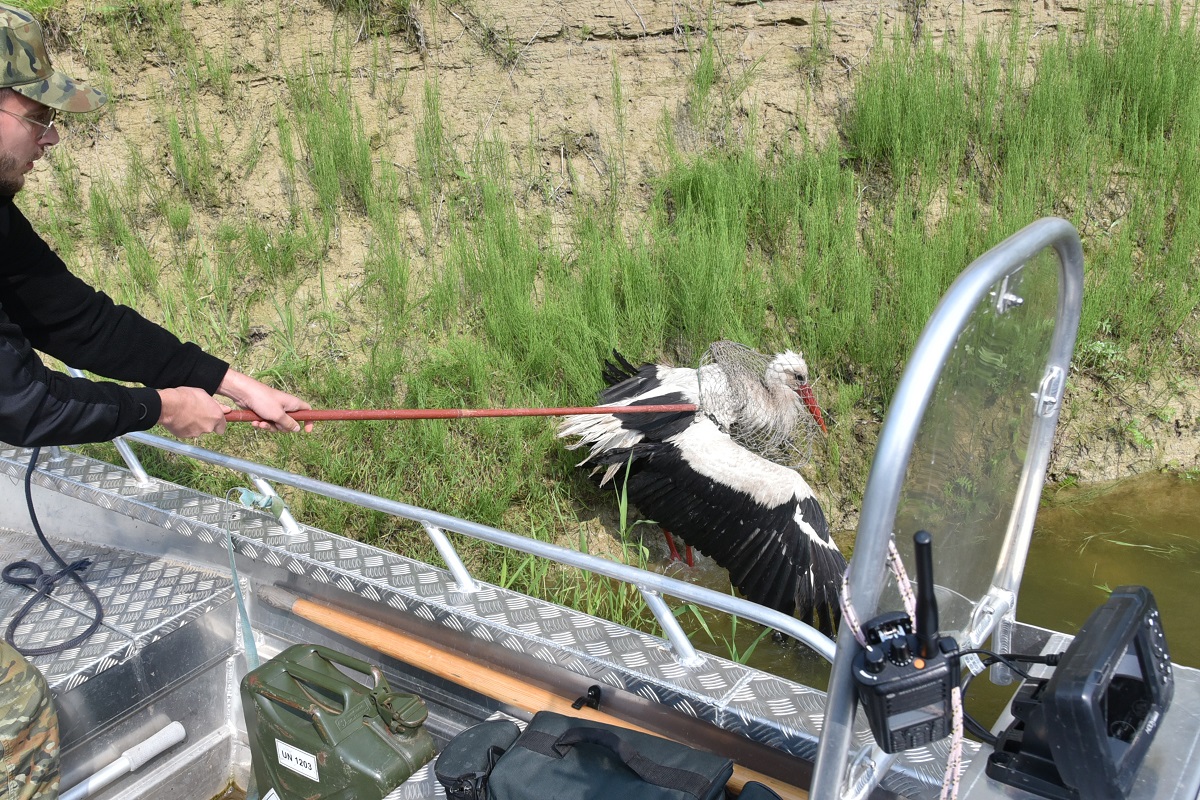 Funkcjonariusze chcąc pomóc boćkowi, natychmiast skontaktowali się z pracownikiem Gminnego Centrum Zarządzania Kryzysowego w Hrubieszowie. Z uwagi na utrudniony dostęp z brzegu do miejsca gdzie przebywał bocian, schwytanie ptaka musiało odbyć się z łodzi patrolowej. Funkcjonariusze Straży Granicznej zachowując zasady bezpieczeństwa, odłowili go przy pomocy siatki. Rannego ptaka przekazano pracownikowi Gminnego Centrum Zarządzania Kryzysowego, który dalej przewiózł zwierzę do lecznicy.Służba w ochronie granicy państwowej niesie ze sobą wiele wyzwań. To nie tylko ochrona patrolowanego odcinka przed nielegalnym przekroczeniem granicy państwowej, ale również reagowanie na wszelkie nieoczekiwane sytuacje. Fakt niesienia pomocy, jest dla nas źródłem wielkiej satysfakcji.