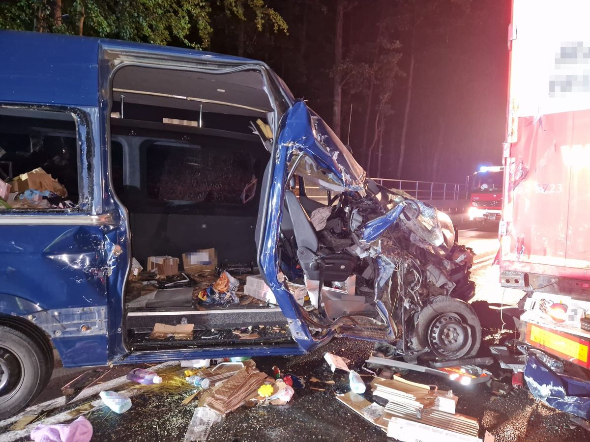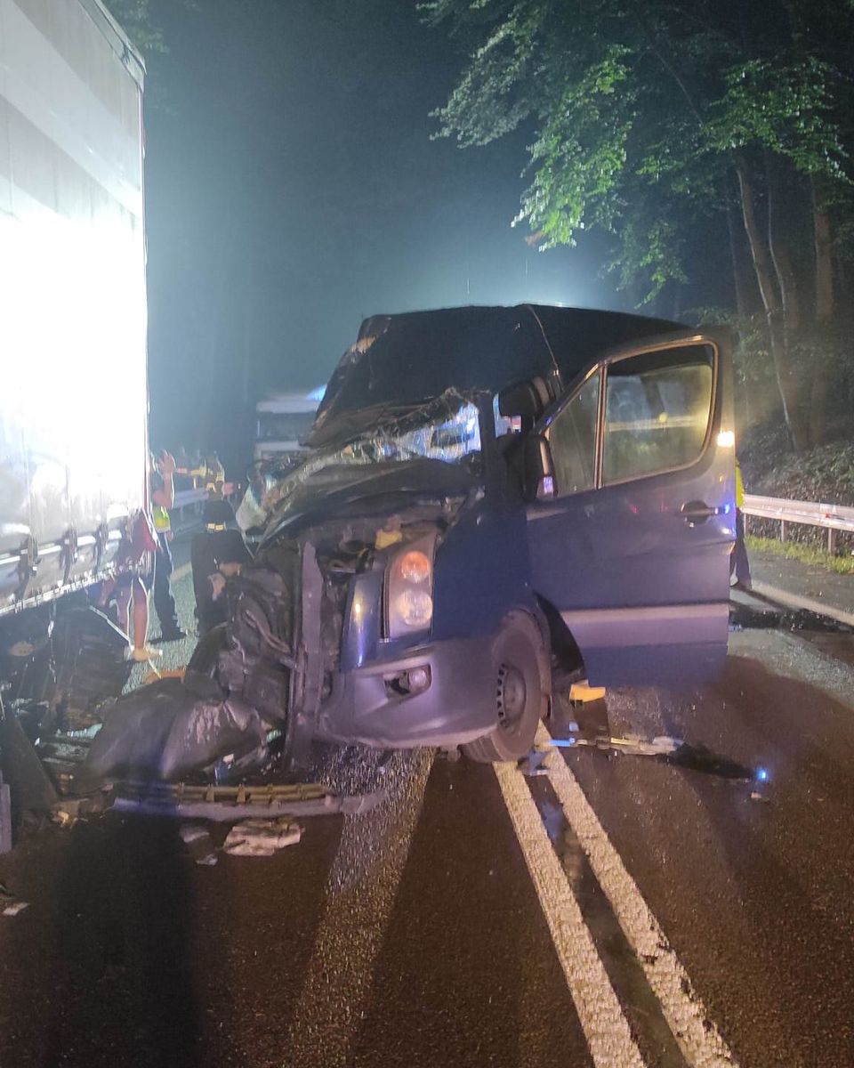 Wstępne ustalenia wskazują, że 29-letni ob. Ukrainy kierujący Volkswagenem typu bus, z niewyjaśnionych dotąd przyczyn uderzył w tył naczepy stojącego na poboczu TIR-a. Busem podróżowało 9 osób, z czego 6 (w tym dwoje dzieci) z obrażeniami ciała trafiło do szpitala. 33-letni ob. Ukrainy, który przyjechał ciężarówką m-ki Renault i oczekiwał w kolejce do przejścia granicznego w Hrebennem, był trzeźwy i nie odniósł obrażeń. Mundurowi sprawdzili również stan trzeźwości kierującego busem, także był trzeźwy. Został zatrzymany i przebywa w policyjnym areszcie. Wyjaśniamy przyczyny i okoliczności tego zdarzenia.