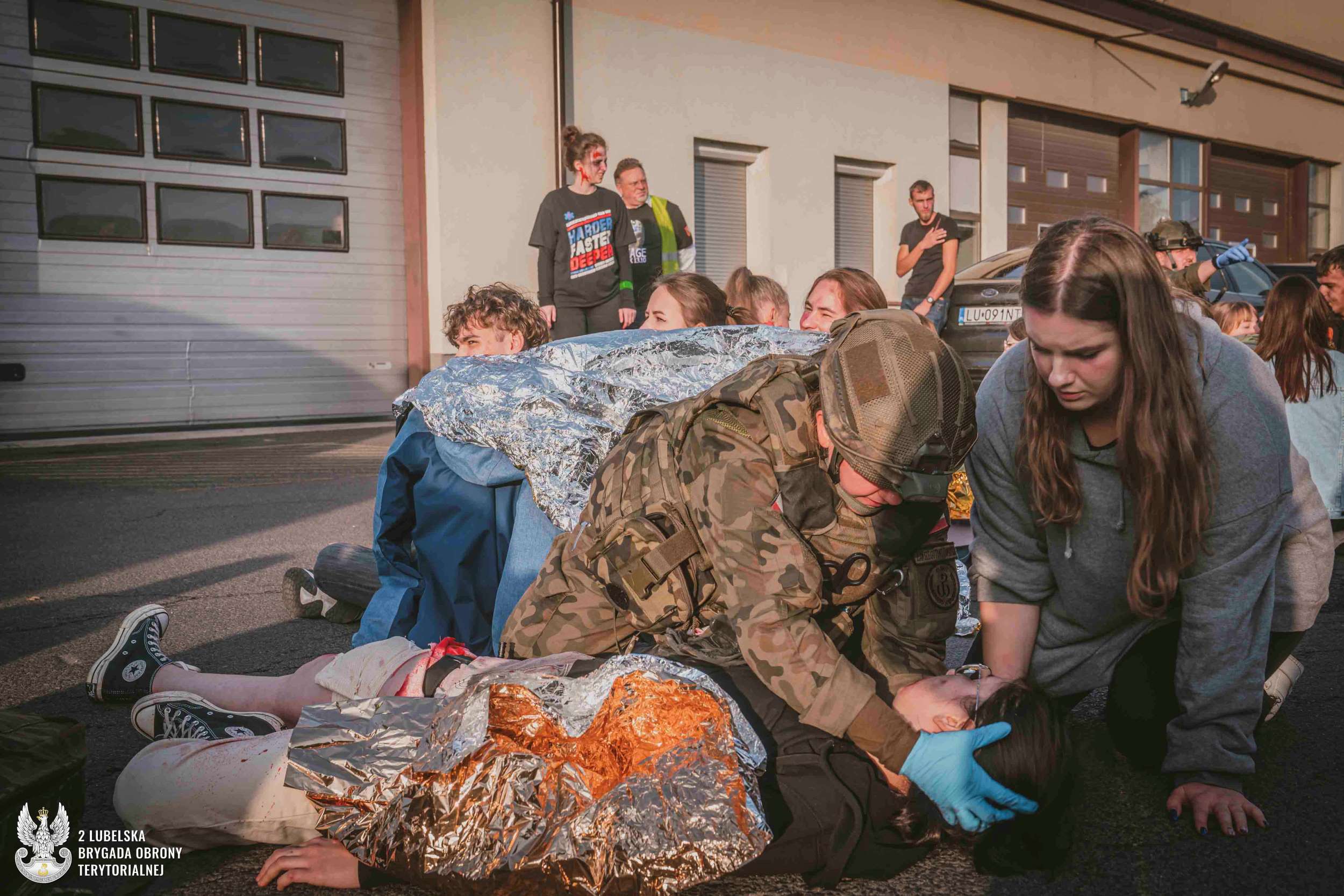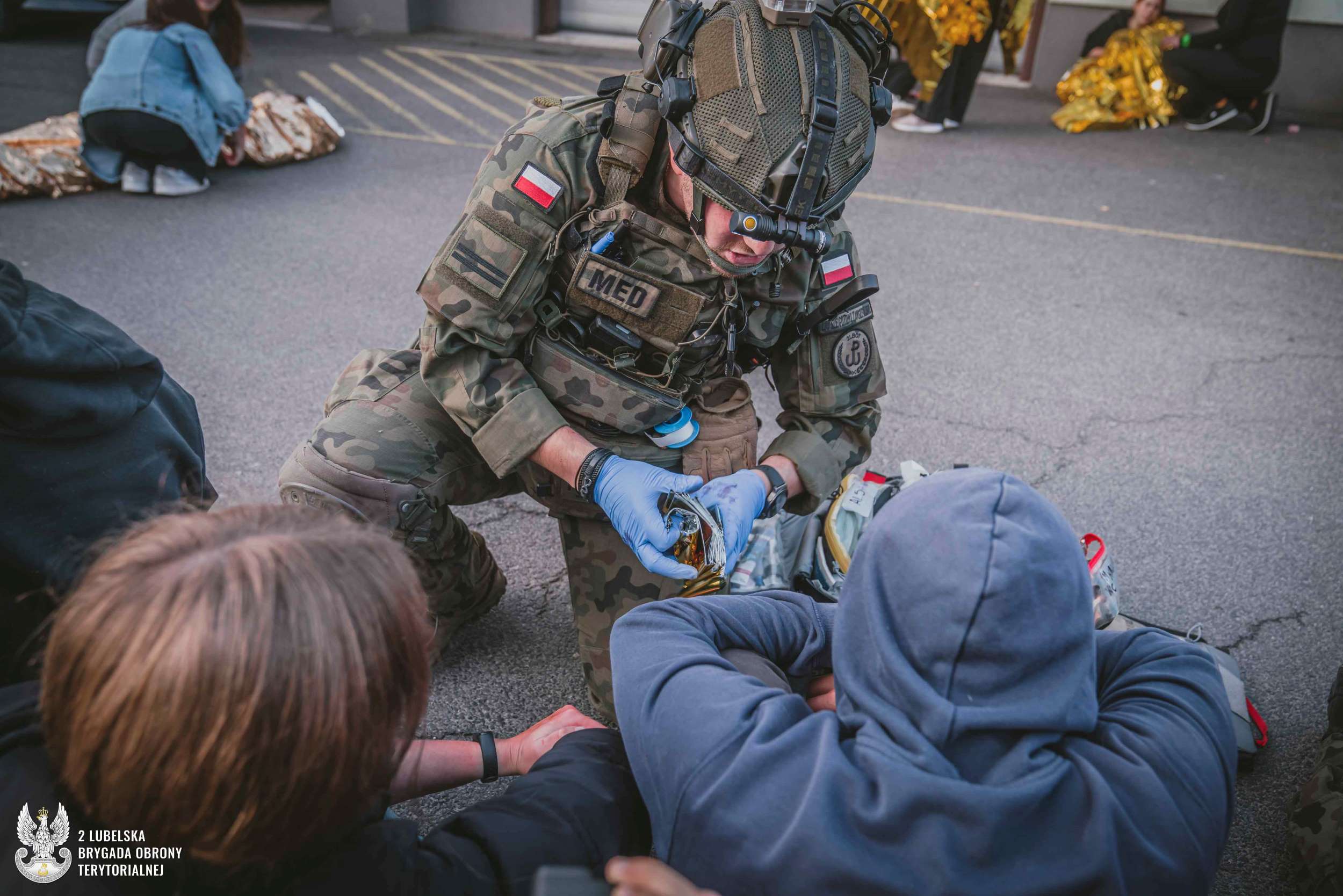 W związku z dużą skalą zdarzenia, dyspozytornia medyczna wezwała do wsparcia żołnierzy 2 Lubelskiej Brygady Obrony Terytorialnej. Zadania terytorialsów polegały na prowadzeniu triażu (segregacja medyczna), ewakuacji rannych z budynku szkoły, udzielaniu pierwszej pomocy medycznej osobom poszkodowanym oraz transporcie rannych wojskowym pojazdem medycznym do wyznaczonych placówek medycznych.