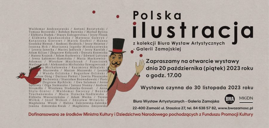 „Polska Ilustracja z kolekcji Biura Wystaw Artystycznych - Galerii Zamojskiej”, to projekt na który składa się wystawa z wydawnictwem towarzyszącym. Na wystawie zaprezentowane będą najcenniejsze i najbardziej reprezentatywne ilustracje z naszej kolekcji tworzonej przez prawie 50 lat. Znajdzie się starannie dobrany wybór 150 ilustracji, 64 autorów, ukazujących talent i kreatywność polskich artystów działających w tej dziedzinie sztuki. Od ilustracji do książek dla dzieci, do tematów dla dorosłego odbiorcy.