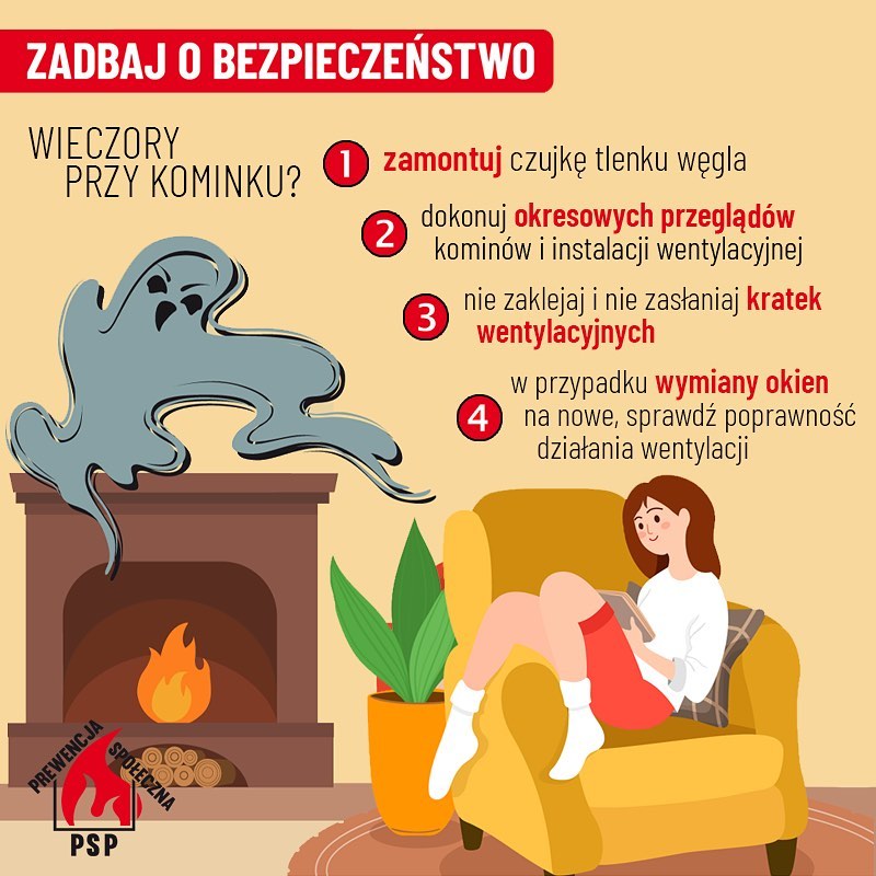 Mając powyższe na względzie apelujemy o właściwe przygotowanie instalacji grzewczych, kominowych, wentylacyjnych i wyposażenie domów w czujniki tlenku węgla, bądź autonomiczne czujki pożarowe.