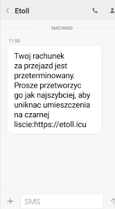 Jeśli otrzymałeś SMS w sprawie płatności za przejazd w e-TOLL zignoruj go i nie klikaj w umieszczony w nim link.