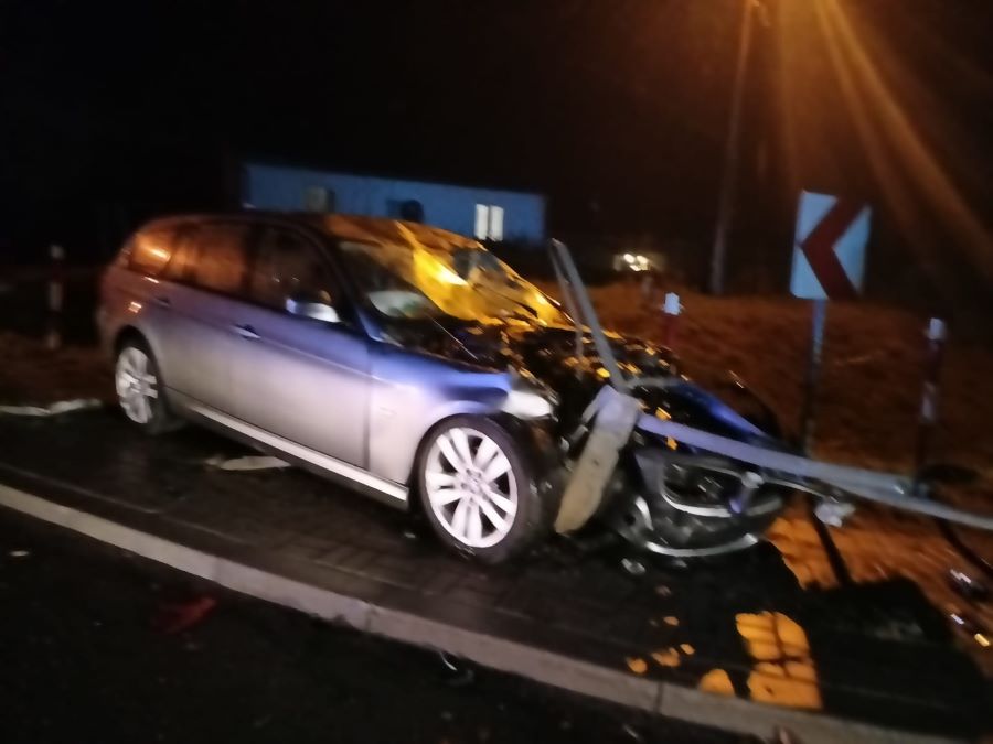 Pijany kierowca BMW wjechał w barierę energochłonną