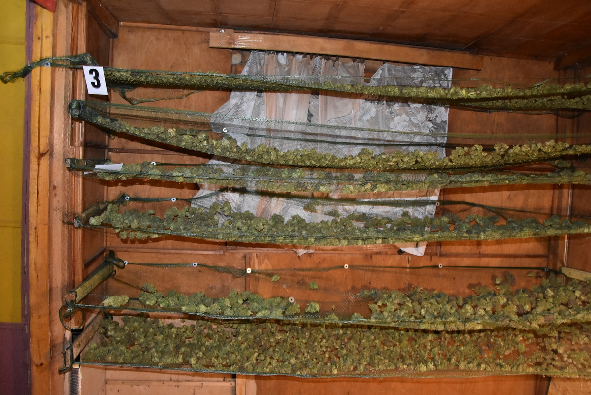 Przypuszczenia operacyjnych potwierdziły się, kiedy weszli do jednej z altanek. Tam ich oczom w specjalnie przygotowanym pomieszczeniu ukazał się szereg półek, na których przy sztucznym oświetleniu suszyły się konopie indyjskie. Znajdowały się one w różnej fazie suszenia. Marihuana znajdowała się również w pudłach na podłodze. Łącznie policjanci zabezpieczyli ponad 26 kilogramów tego marihuany, a także sprzęt służący do wytwarzania narkotyków. Na miejscu zatrzymali też trzech przebywających tam mężczyzn, którzy byli kompletnie zaskoczeni niespodziewaną wizytą funkcjonariuszy.