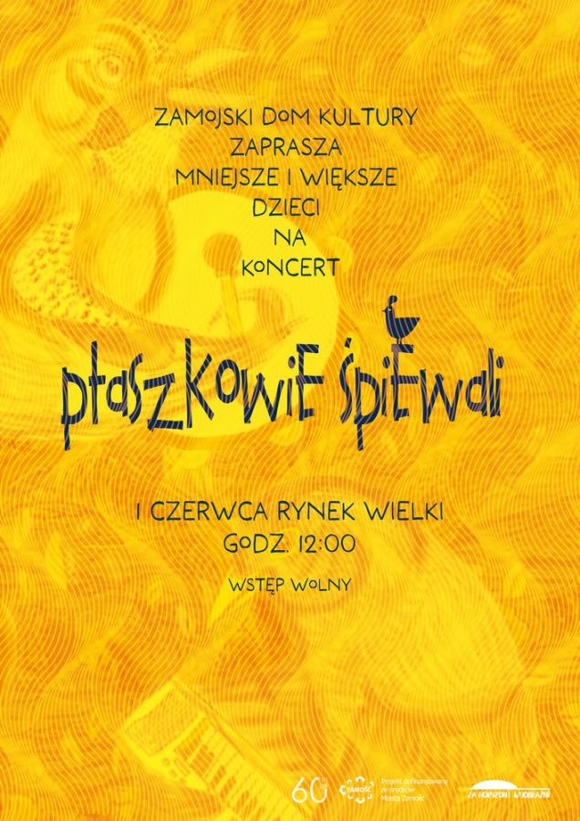 W związku ze świętem wszystkich dzieci ZDK zaprasza całe rodziny na koncert „PTASZKOWIE ŚPIEWALI”, który odbędzie się oczywiście 1 czerwca o godz. 12:00 na scenie Rynku Wielkiego!