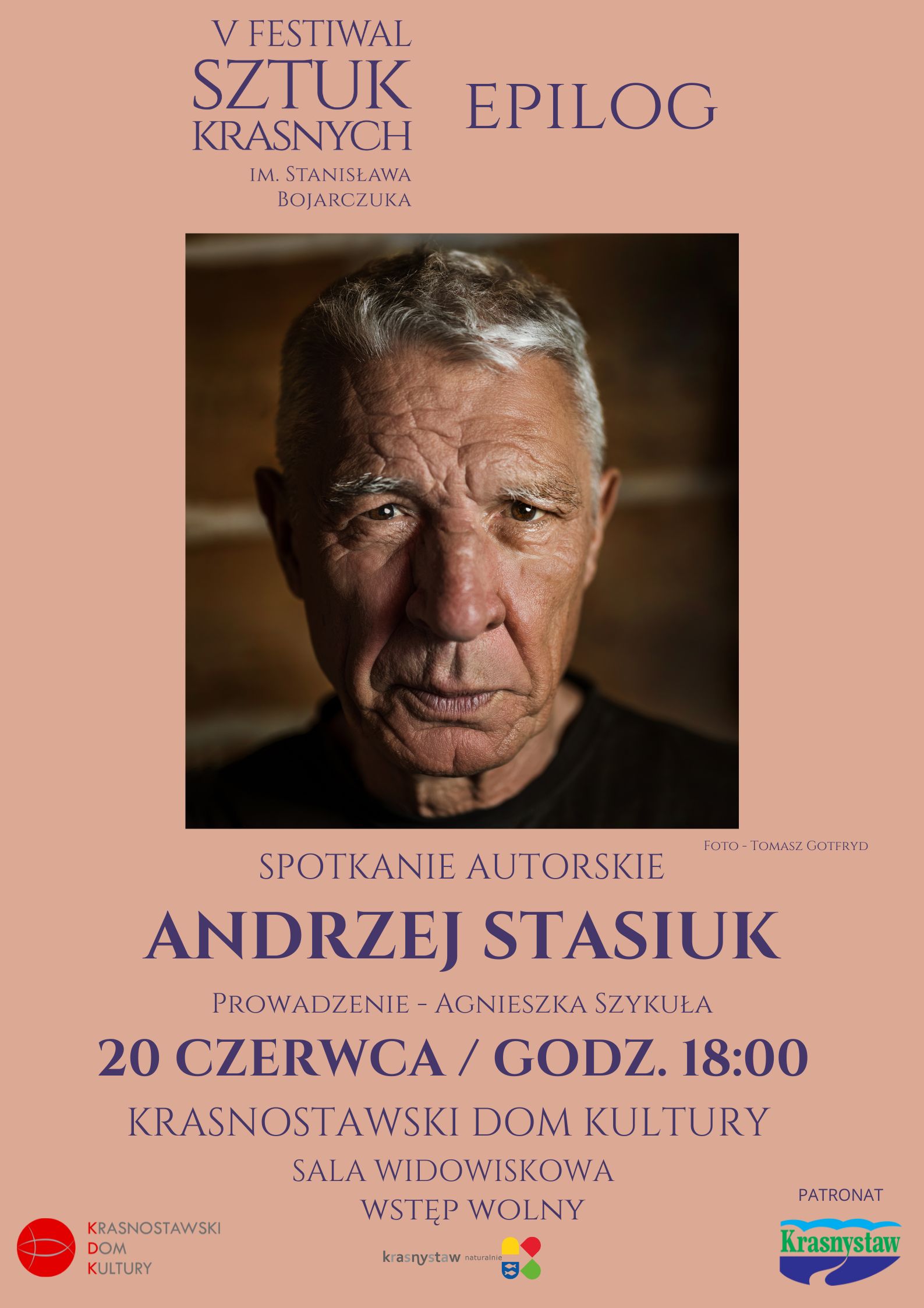 dodano: 18.06.2024Krasnostawski Dom Kultury zaprasza 20 czerwca 2024 r. o godzinie 18:00 na spotkanie autorskie z Andrzejem Stasiukiem. Spotkanie będzie epilogiem V Festiwalu Sztuk Krasnych im. Stanisława Bojarczuka. Andrzej Stasiuk to postać symboliczna dla festiwalu. Był gościem pierwszej edycji wydarzenia zorganizowanej w 2010 roku przez nieodżałowanego animatora kultury Mariusza Kargula. Spotkanie będzie promowało wydaną 22 maja br. przez Wydawnictwo Czarne najnowszą książkę Andrzeja Stasiuka „Rzeka Dzieciństwa”. Spotkanie poprowadzi Agnieszka Szykuła. Wstęp wolny!
