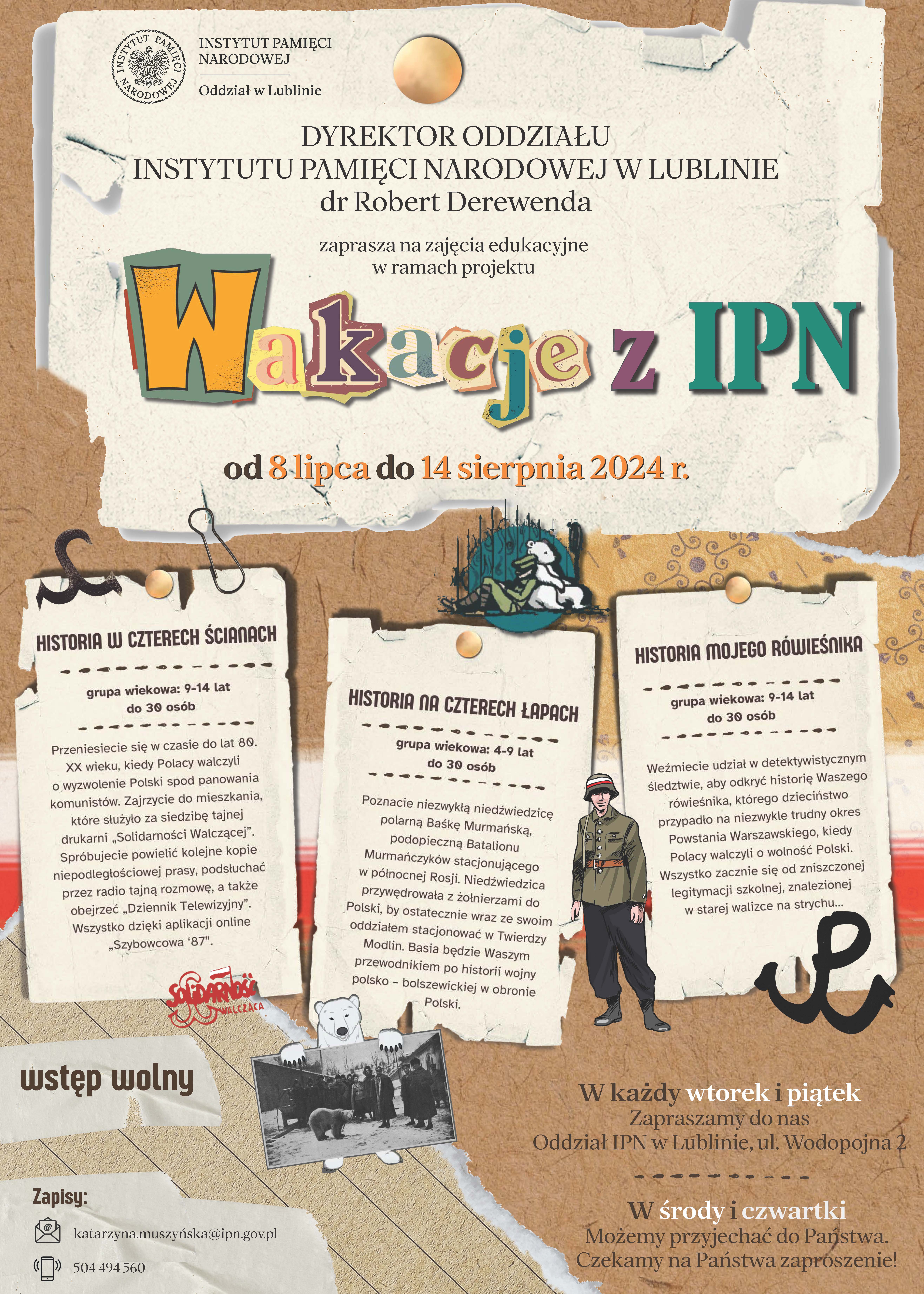 Na zajęcia obowiązują zapisy pod adresem mailowym: katarzyna.muszynska@ipn.gov.pl lub pod numerem telefonu: 504 494 560.