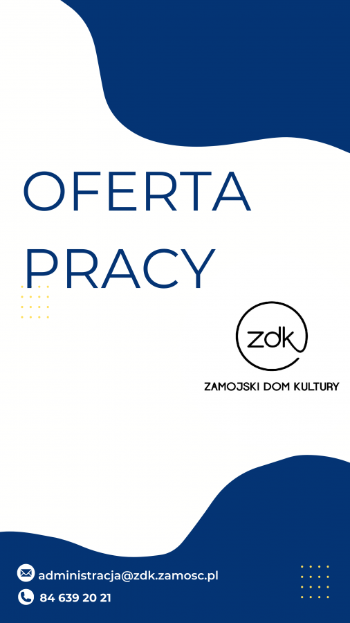 dodano: 01.07.2024Zamojski Dom Kultury w Zamościu poszukuje kandydatów na stanowisko: administratora budynku (umowa o pracę na pełen etat od 01.08.2024r.)
