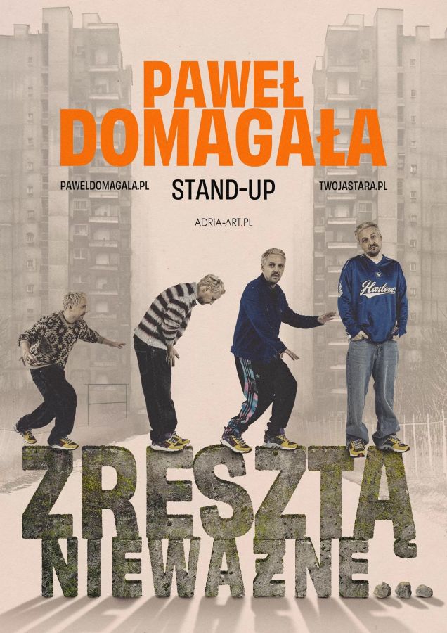 dodano: 18.07.2024Jeśli ktoś chce spotkać romantycznego Pawła Domagałę, to serdecznie zapraszamy na jego koncert. „Zresztą, nieważne” to stand-up, w którym artysta wypowiada się bez ogródek. Paweł Domagała śmieje się ze wszystkiego – zarówno z tego, co go denerwuje, jak i z tego, co lubi.