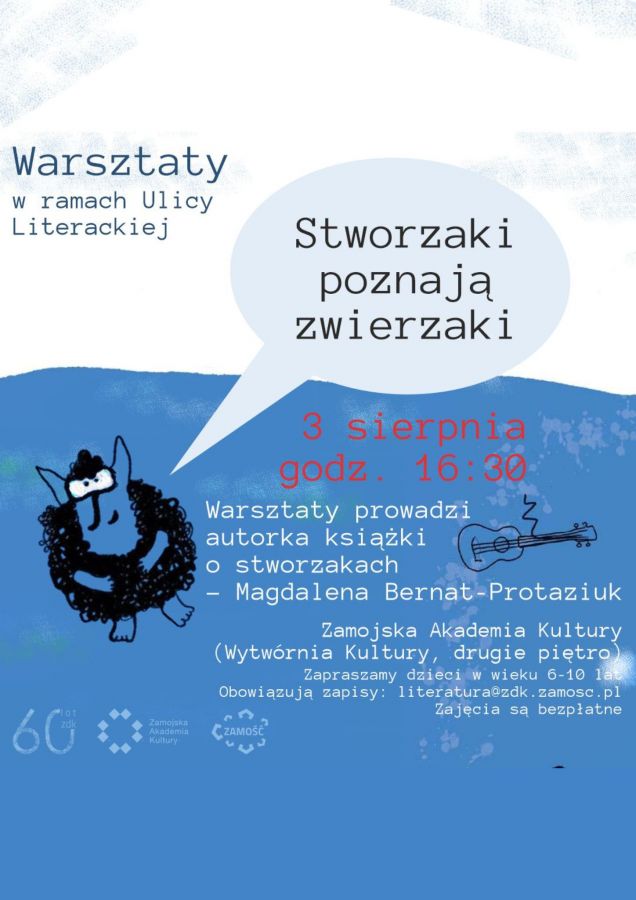 Widzimy się 3 sierpnia w Zamojskiej Akademii Kultury o godz. 16.30. Obowiązują zapisy: literatura@zdk.zamosc.pl