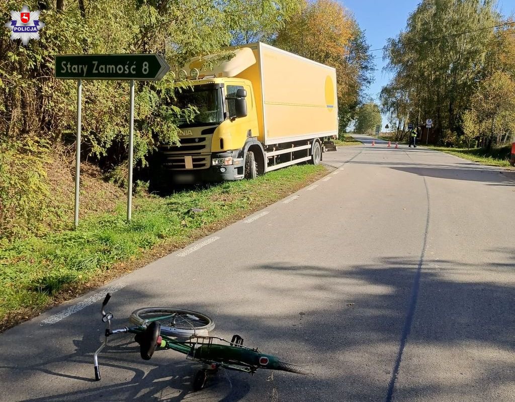 Około godziny 9.30 dyżurny zamojskiej komendy otrzymał zgłoszenie o potrąceniu rowerzysty w miejscowości Majdan Sitaniecki w gminie Stary Zamość. Skierowani tam policjanci wstępnie ustalili, że kierujący pojazdem ciężarowym marki Scania jechał drogą powiatowa od Kalinówki w kierunku Stryjowa. Przejeżdżając na wprost przez skrzyżowanie nagle zauważył rowerzystę, który jadąc z jego lewej strony wyjechał na skrzyżowanie z drogi gminnej podporządkowanej. Kierujący ciężarówką użył sygnału dźwiękowego, jednak bezskutecznie, cyklista nie zareagował. Zaczął też hamować odbijając jednocześnie pojazdem na prawe pobocze. Mimo podjętych działań nie zdołał uniknąć zderzenia. Kierujący Scanią uderzył w rowerzystą przednią lewą częścią kabiny.