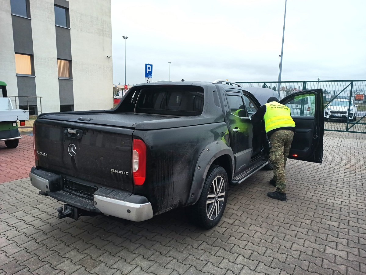 Na terenie drogowego przejścia granicznego w Zosinie, na kierunku wyjazdowym z Polski, funkcjonariusze NOSG przerwali podróż 34-letniemu obywatelowi Ukrainy. Mężczyzna próbował wyjechać z Polski na Ukrainę, samochodem osobowym marki Mercedes (rok prod. 2020). Podczas prowadzonej kontroli granicznej, funkcjonariusze Straży Granicznej, ujawnili w pojeździe ślady prawdopodobnej ingerencji w pole numeryczne VIN. Podczas dalszych czynności mundurowi ustalili również, iż auto jest poszukiwane jako utracone w Niemczech. Dodatkowo w pojeździe zamontowane zostały podrobione tablice rejestracyjne, a kierowca posługiwał się sfałszowanym szwedzkim dowodem rejestracyjnym. Wartość zabezpieczonego samochodu oszacowano wstępnie na kwotę 200 tys. zł. W sprawie wszczęto postępowanie przygotowawcze. Kierowcę pojazdu przekazano do dalszych czynności funkcjonariuszom Policji z Hrubieszowa.