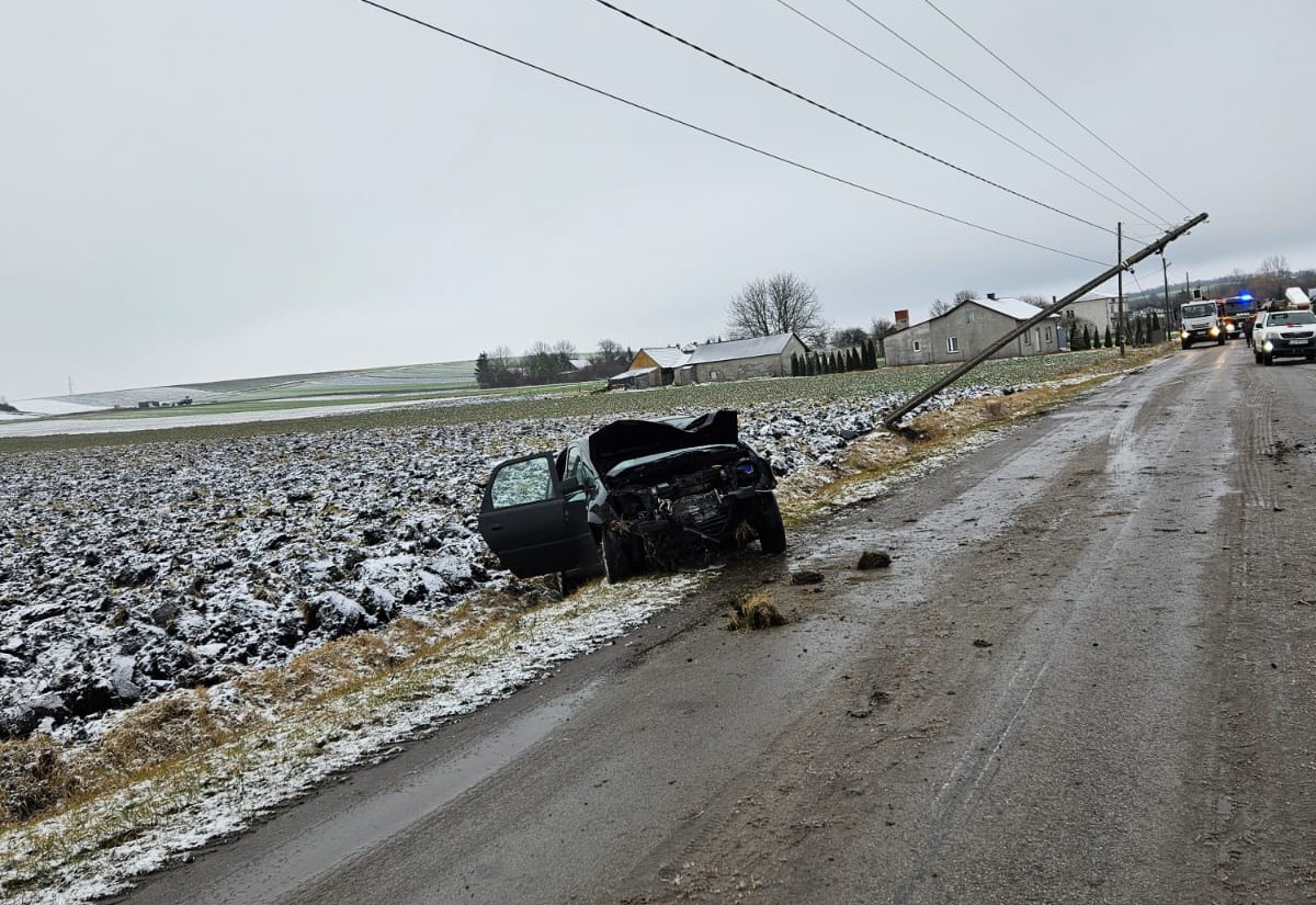 We wtorek przed południem otrzymaliśmy zgłoszenie, że samochód osobowy wjechał w słup energetyczny.