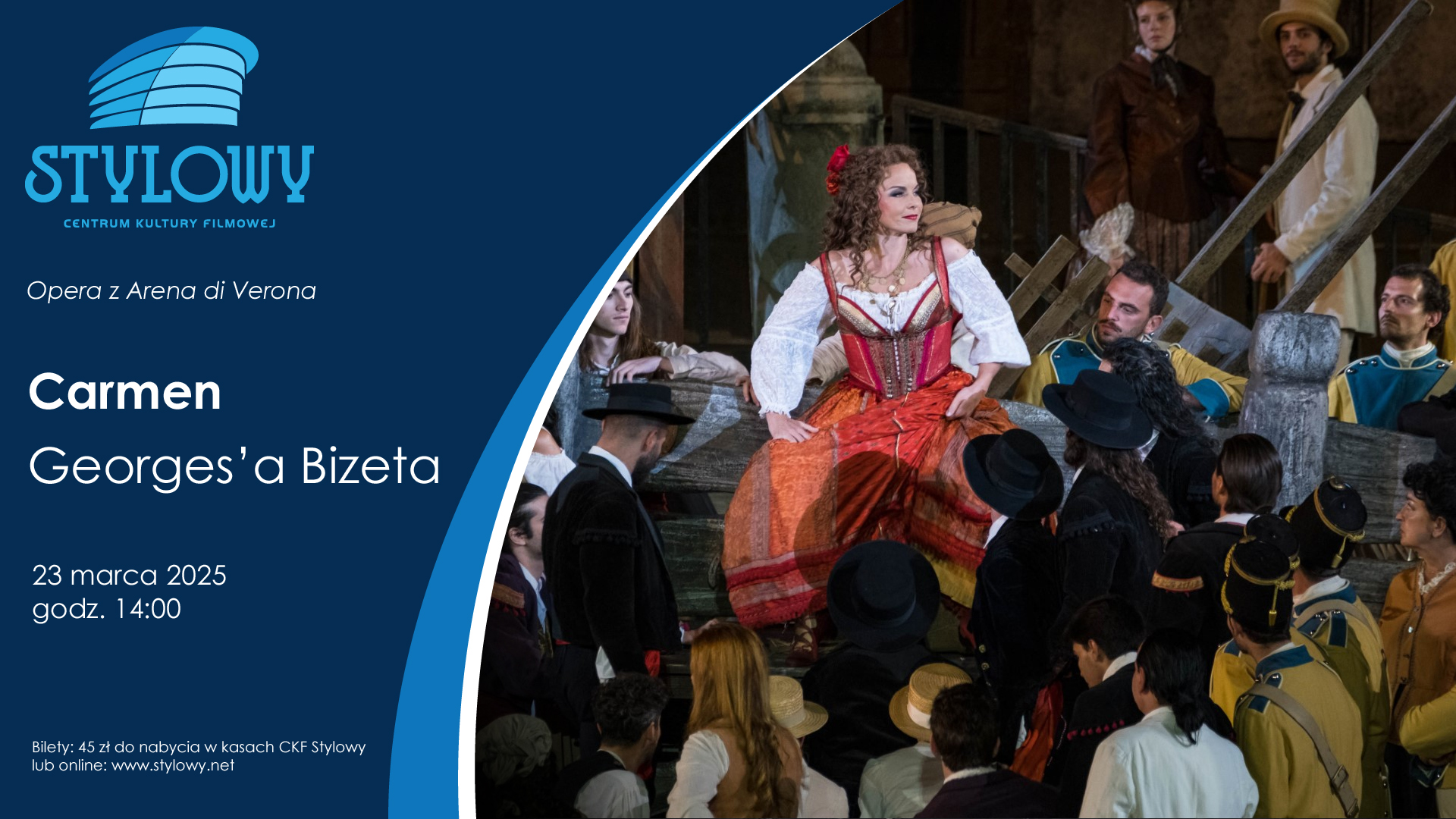 dodano: 06.03.2025Najsłynniejsza opera świata, śpiewacy o międzynarodowej renomie, monumentalne dekoracje i klasyczne kostiumy – Centrum Kultury Filmowej „Stylowy” w Zamościu zaprasza przed wielki ekran na „Carmen” Bizeta ze słynnego werońskiego amfiteatru Arena di Verona. Wydarzenie odbędzie się 23 marca 2025 o godz. 14:00. Bilety: 45 zł.