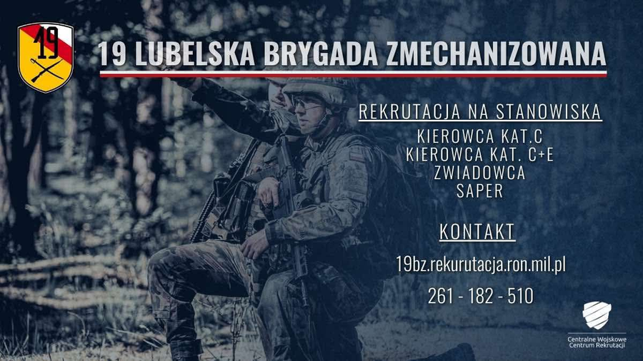 Kandydaci zainteresowani służbą w 19. Brygadzie Zmechanizowanej mogą kontaktować poprzez przesłanie CV na adres: 19bz.rekrutacja@ron.mil.pl