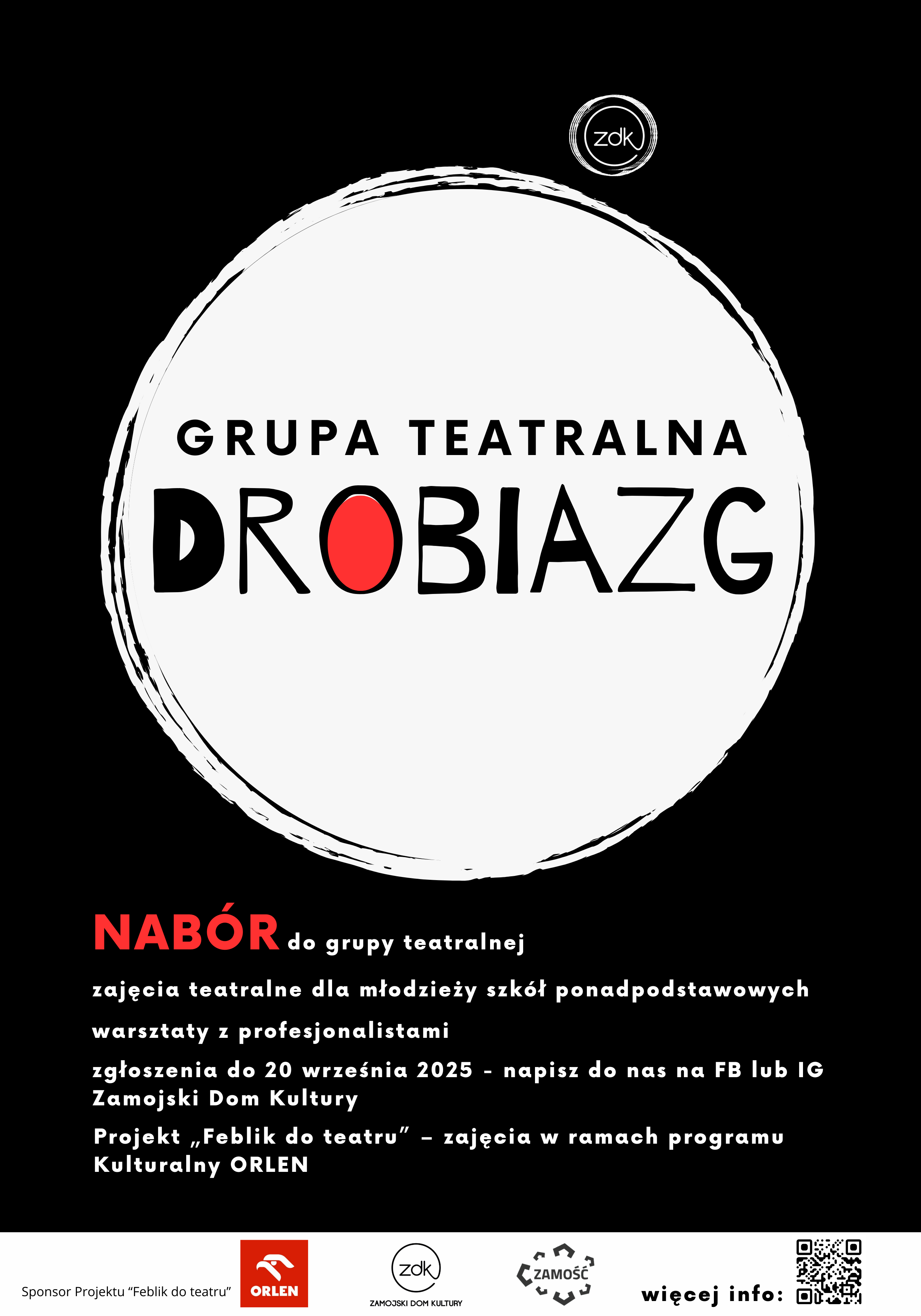 Zgłoszenia przyjmujemy do 20 września 2025r. Wystarczy napisać wiadomość w mediach społecznościowych (FB, IG) Zamojskiego Domu Kultury.