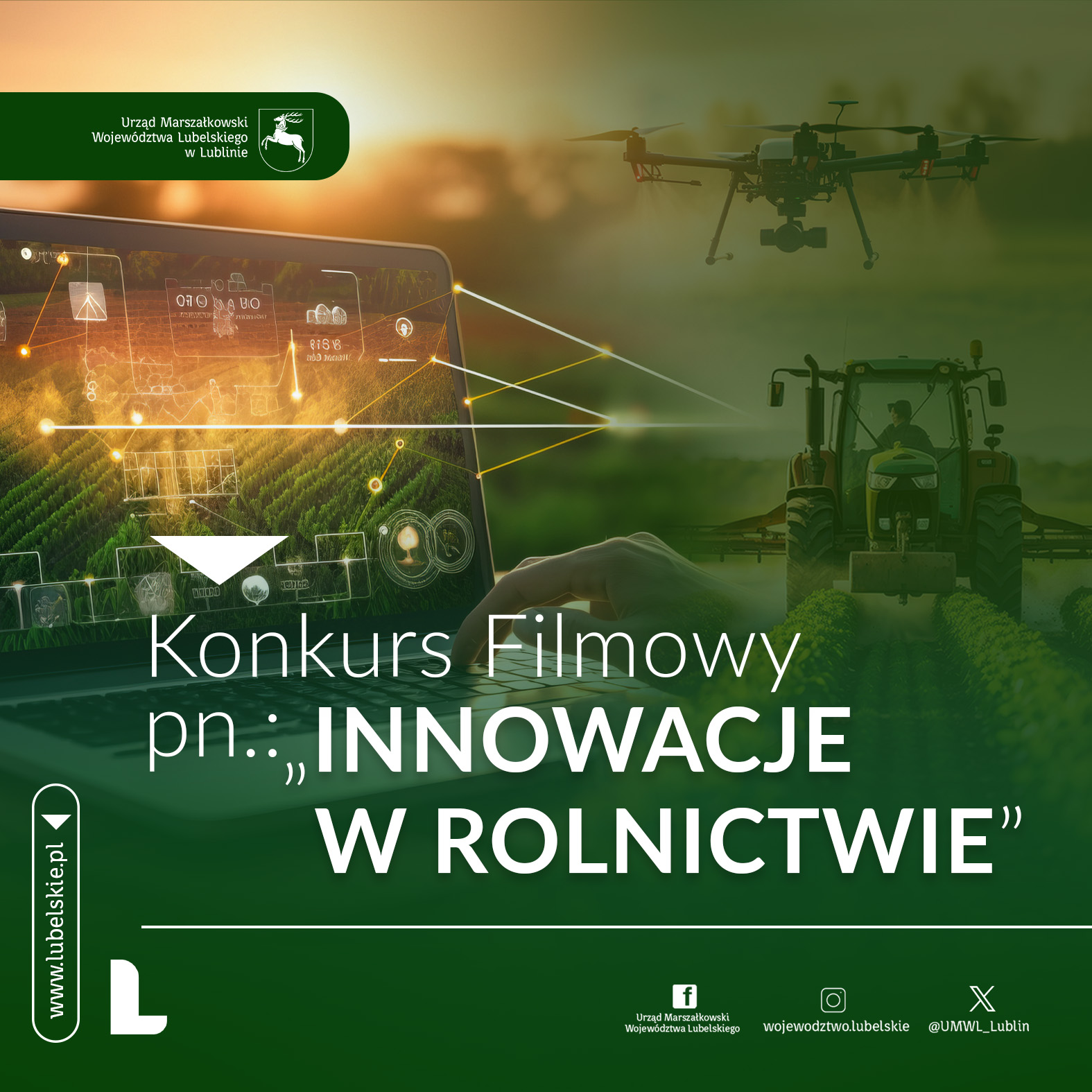 Chcąc promować nowoczesne podejście do rolnictwa oraz pokazać, jak młode pokolenie widzi przyszłość tej dziedziny, Departament Rolnictwa i Rozwoju Obszarów Wiejskich UMWL w Lublinie zaprasza szkoły rolnicze z terenu województwa lubelskiego do udziału w konkursie filmowym „Innowacje w rolnictwie”. Filmy mają ukazywać różnorodność i efektywności tych rozwiązań, ze szczególnym uwzględnieniem ich praktycznego zastosowania w rolnictwie oraz ukazania wpływu na środowisko i lokalną społeczność.