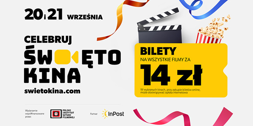dodano: 19.09.2025Centrum Kultury Filmowej „Stylowy” w Zamościu zaprasza na Święto Kina. W tym roku świętujemy 2 dni! W sobotę i niedzielę, 20-21 września 2025, bilet na każdy seans będzie kosztować tylko 14 zł. To ogólnopolska akcja, której ideą jest upowszechnianie sztuki filmowej i promowanie kina jako rozrywki dostępnej dla wszystkich. Zapraszamy do wspólnego świętowania. W repertuarze filmowe hity - każdy znajdzie coś dla siebie!