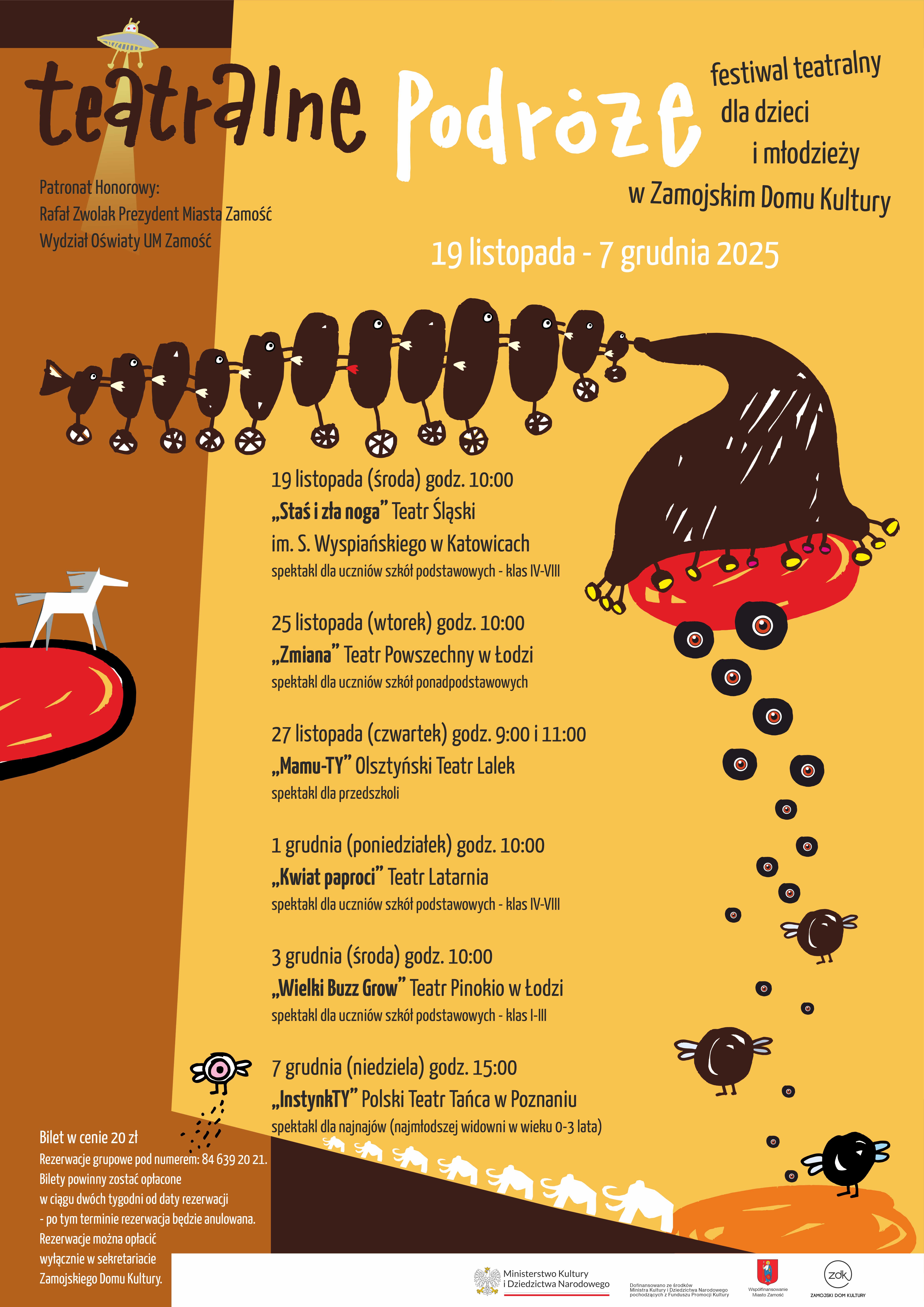 Więcej informacji o spektaklach oraz organizacji rezerwacji biletów na stronie ZDK: https://zdk.zamosc.pl/news/2732/quotteatralne-podrozequot-festiwal-teatralny-dla-dzieci.html