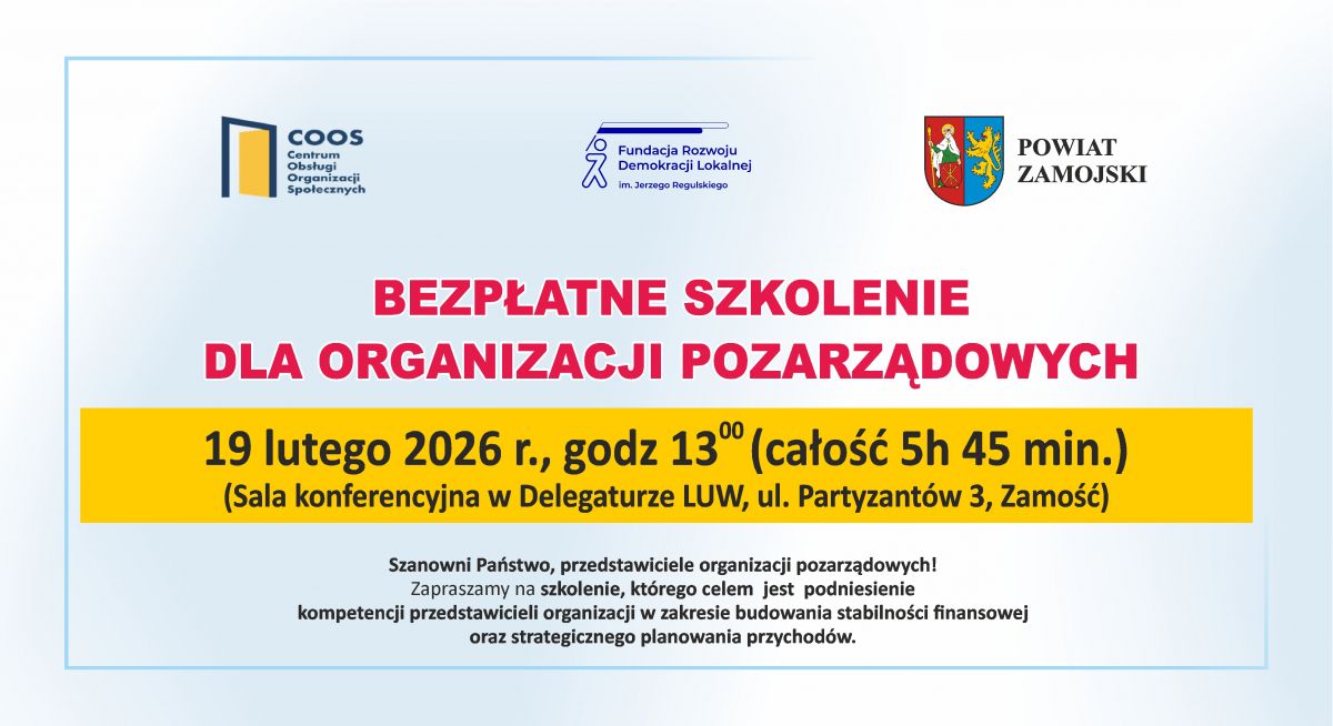 Szkolenie realizowane jest przez Centrum Obsługi Organizacji Społecznych