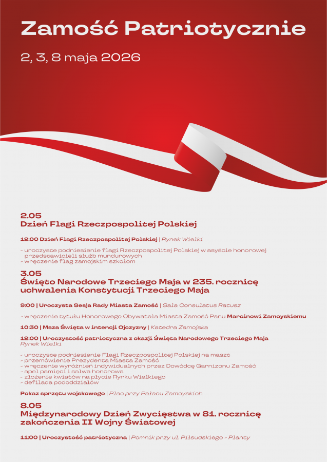 12:00 Dzień Flagi Rzeczpospolitej Polskiej – ceremoniał z uroczystym podniesieniem flagi Rzeczpospolitej Polskiej i wręczeniem flag zamojskim szkołom | Rynek Wielki