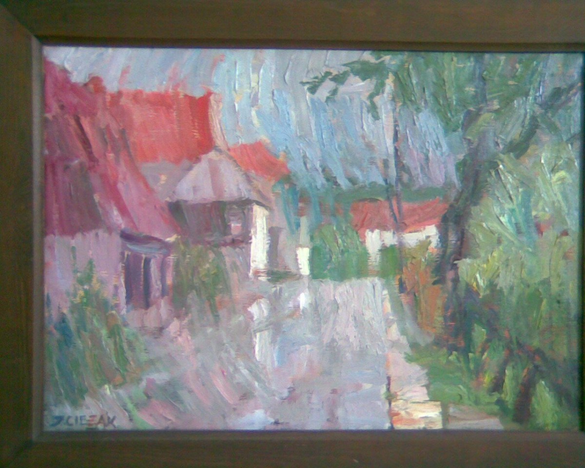 Zawsze jeżeli rozmawiamy o moim malarstwie to nieuchronnie pojawia się słowo „kolor". Można wspomnieć o rysunku, albo o kompozycji, ale to, co interesuje mnie najbardziej i to, nad czym się skupiam - to właśnie kolor. Chciałbym aby to on w procesie powstawania prac był najważniejszy, organizował obrazy, podporządkowywał sobie i rysunek i kompozycję. Taka swoista tendencja polegająca na akcentowaniu koloru w kompozycji malarskiej przy jednoczesnym osłabieniu znaczenia formy i linii. Dominująca tematyka moich prac to pejzaż, martwa natura i studium portretowe. Uznaję kolor za kompozycyjnie najważniejszy element obrazu, jego główny budulec. Staram się traktować plamę barwną jako środek częściowo zastępujący światło. Każdy stopień nasilenia światła być może powinien - uzyskać swój odpowiednik w plamie o określonej barwie. Podczas pracy mimowolnie myślę o sprawach, które decydują o jakości tkanki malarskiej i sensie pracy malarza właśnie dzisiaj, w świecie pomieszania wartości i relatywizowania pojęć w sztuce. Wydaję mi się też, że coraz więcej artystów spogląda w stronę starych mistrzów, przypomina sobie stare prawdy o sztuce i życiu (cyt. Dariusz Ciężak).