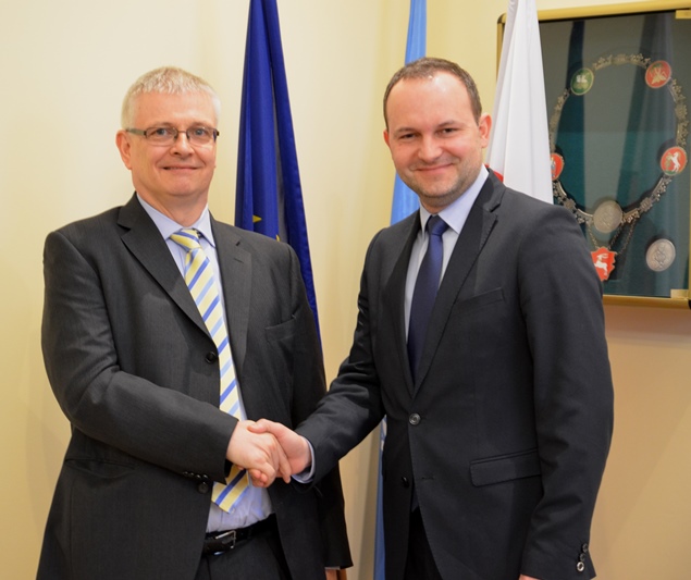 dodano: 14.02.2014Ambasador Wielkiej Brytanii w Polsce, Robin Barnett przebywający w województwie lubelskim w dniach 12-13 lutego 2014 r., spotkał się z marszałkiem województwa lubelskiego, Krzysztofem Hetmanem. W delegacji uczestniczyli dyrektor kancelarii ambasadora, Justyna Kubica, dyrektor działu handlowego Brytyjsko-Polskiej Izby Handlowej Patrick Ney oraz konsul honorowy Wielkiej Brytanii w Lublinie, Jan Danilczuk.