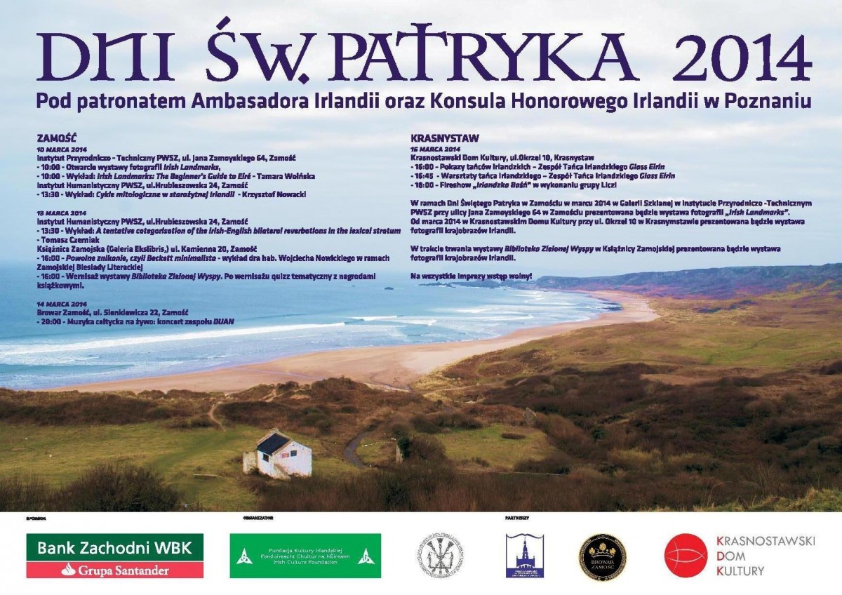 Fundacja Kultury Irlandzkiej jest organizacją non profit o statusie organizacji pożytku publicznego. Od 2003 roku promuje kulturę irlandzką w Polsce we wszelkich jej aspektach oraz dofinansowuje irlandzkie projekty indywidualne. Jej partnerami w organizacji świeta patrona Irlandii w Zamościu i Krasnymstawie zostali: Bank Zachodni WBK, Państwowa Wyższa Szkoła Zawodowa w Zamościu, Książnica Zamojska, Browar Zamość i Krasnostawski Dom Kultury.